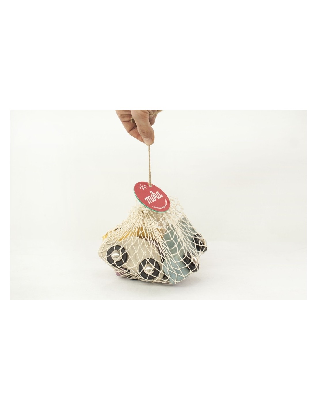 Vienen presentados en un pack de cuatro unidades en una red de algodón para guardarlos y transportarlos cómodamente. ¡Llevadlos donde queráis!