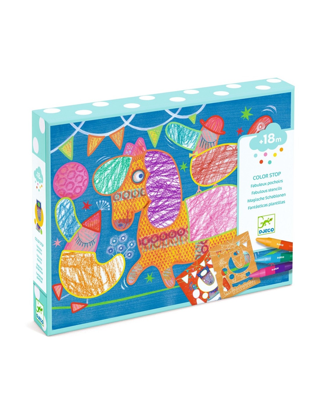 Con Color Stop de Djeco, una primera plantilla de dibujos para pintar apta para niños y niñas a partir de 18 meses, los peques pueden dejar volar su creatividad y pintar precisos dibujos utilizando plantillas de dibujos para pintar. Con la ayuda de un adulto, el niño colocará una hoja en la base de la caja y luego la plantilla correspondiente. ¡Pintad en los agujeros y descubrid bonitas imágenes que cobrarán vida con sus colores favoritos!