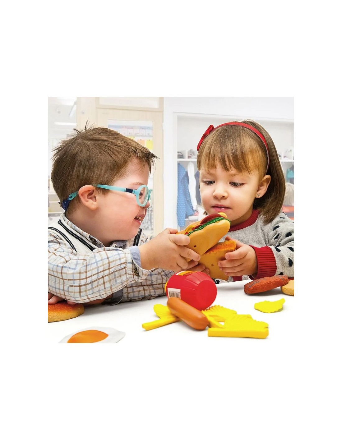 Los productos más conocidos de la llamada "comida rápida". Este pack os permitirá simular que tenéis un restaurante y así pasaréis horas y horas de diversión. De un trozo de pizza a un bocadillo, ¡tendrás todos los esenciales para abrir tu cocina! ¡Disfrútalo!