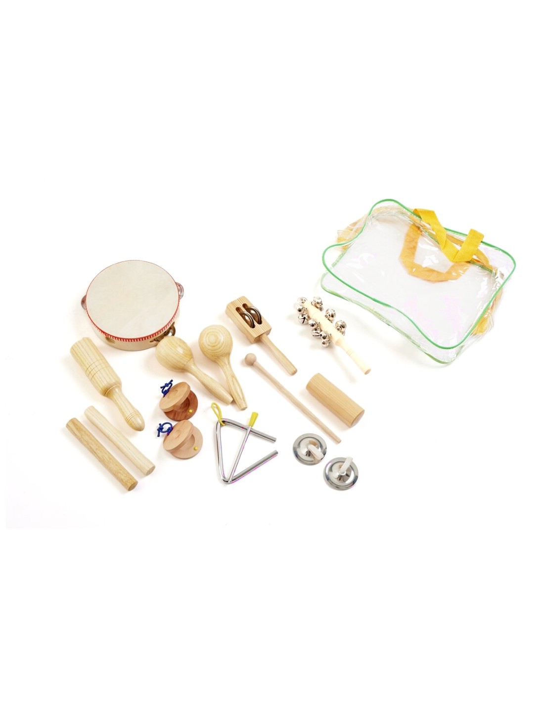 Todos los instrumentos vienen en una práctica bolsa de almacenamiento, lo que facilita su organización y transporte, permitiendo llevar la música a cualquier lugar.