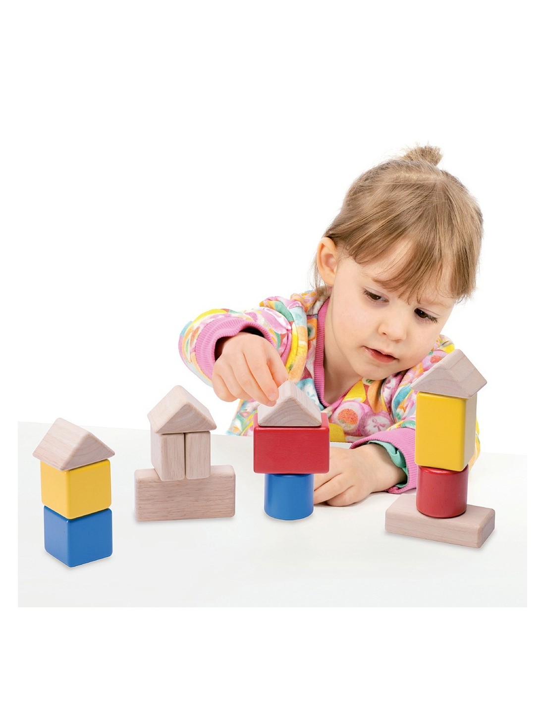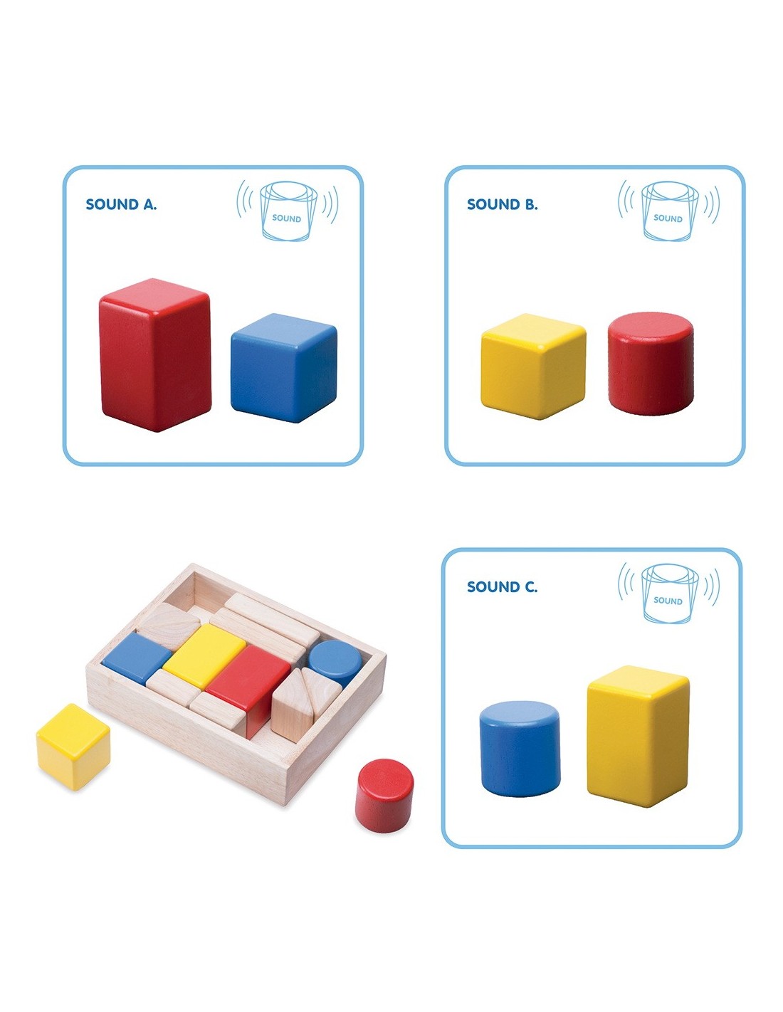Este set contiene 14 bloques con diferentes formas y colores para jugar a construcciones y para aprender formas geométricas. Solo hay un modo de colocarlas en la caja y que quepan todas así que guardarlas también será todo un reto. Los bloques de colores contienen bolitas en su interior, que producen hasta 3 sonidos diferentes.