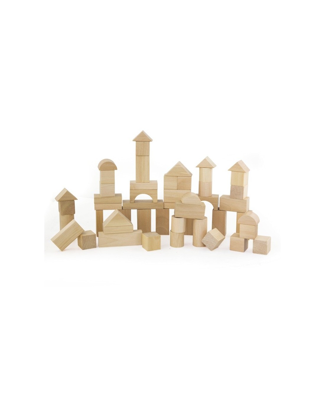 Kit de construcción de madera natural de 50 piezas. Incluye una guía con 18 modelos a construir y todo viene guardado en un práctico envase ecológico para tenerlas siempre ordenadas. Un juguete ideal para desarrollar la creatividad, la habilidad ojo-mano y la percepción espacial.