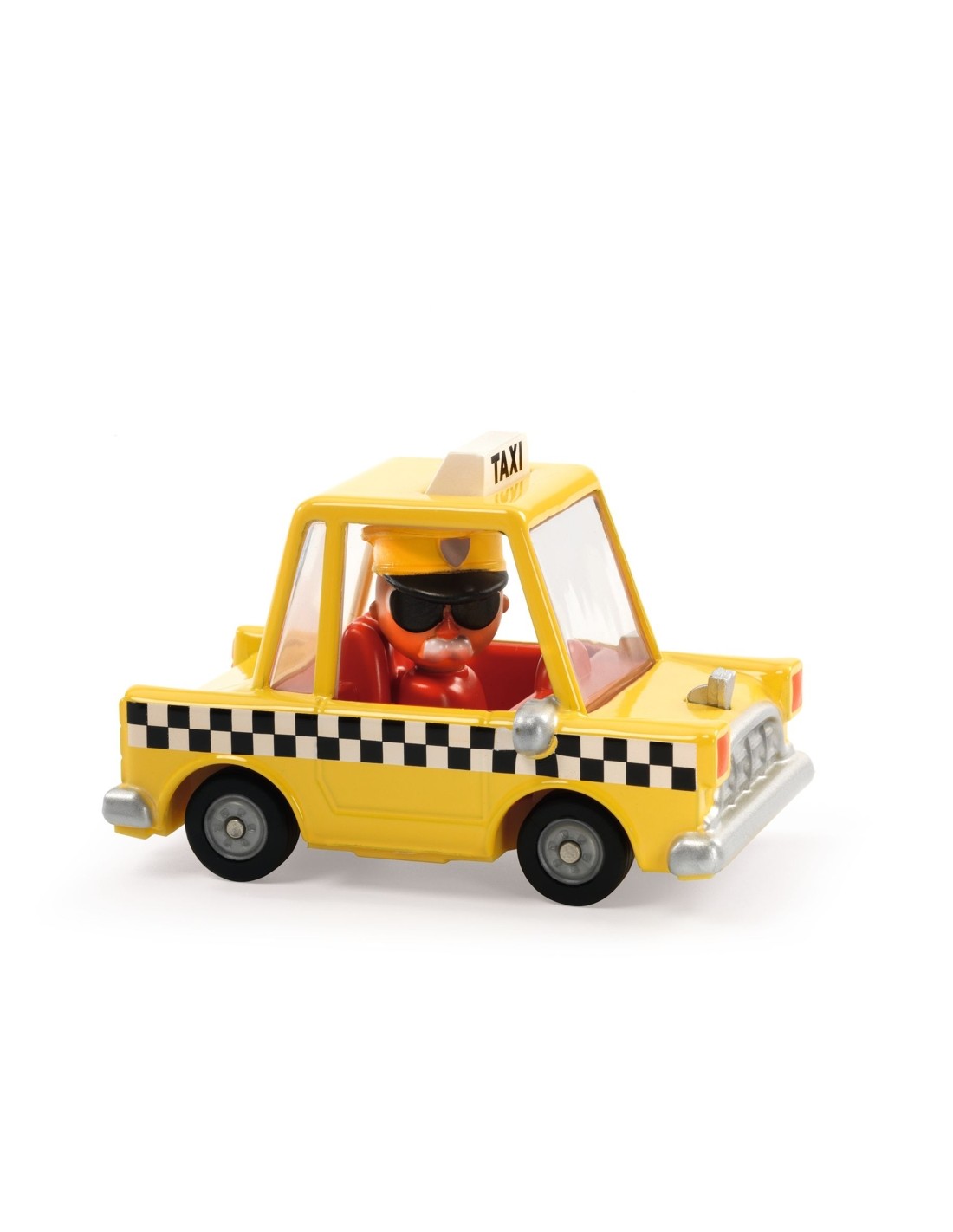 Las características de Taxi Joe incluyen una estructura de metal con suspensión, cabeza de piloto giratoria, neumáticos de goma y pintura ultrasónica de metales. Con dimensiones de 4 x 6,7 x 4,4 cm, este juguete está diseñado para niños a partir de 3 años, ofreciendo diversión y aprendizaje a medida que exploran el fascinante mundo de Crazy Motors de Djeco.