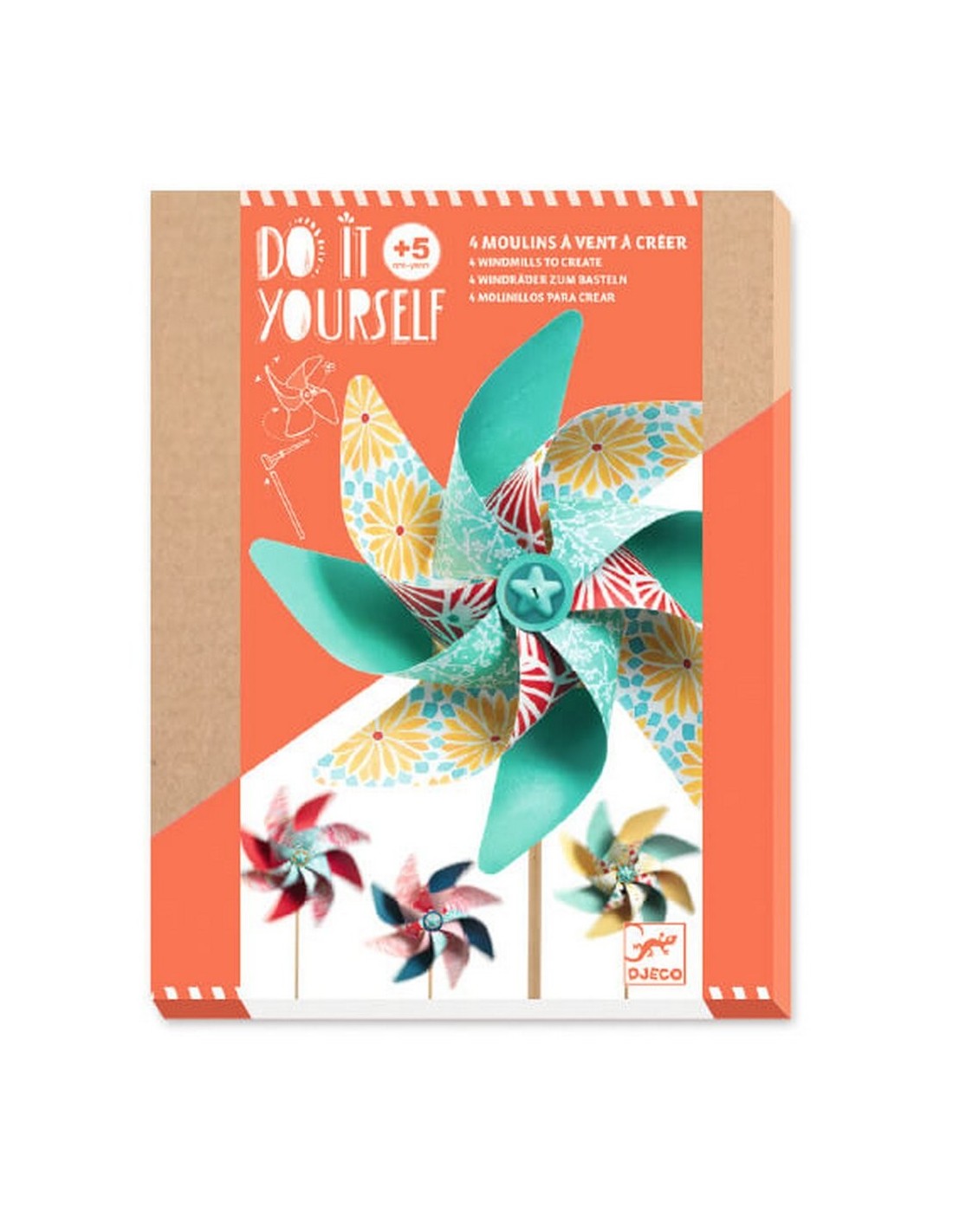 ¡Crea molinos de viento con este juego de Djeco! Si te gustan las manualidades, disfrutarás muchísimo construyendo tus propios molinos, que con los diseños de las láminas que se incluyen, serán de bonitos y llamativos colores. ¡Pídele a tus padres que lo pongan en la terraza y verás cómo se mueve cuando sople el viento!