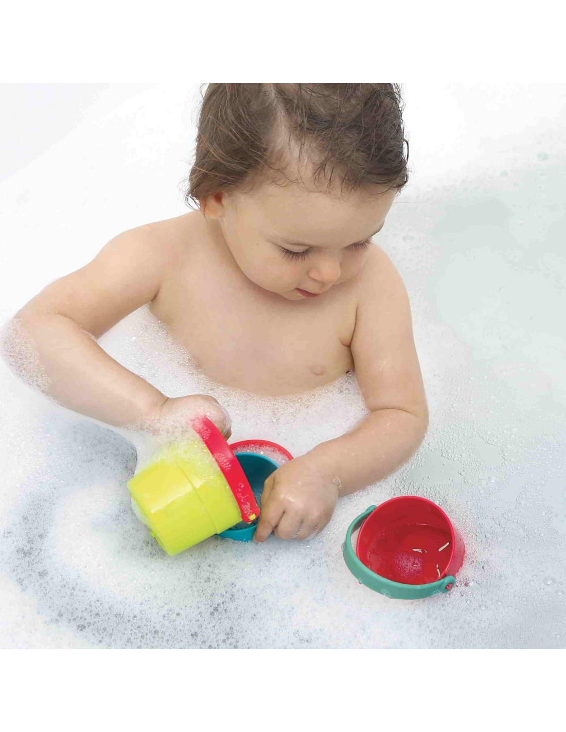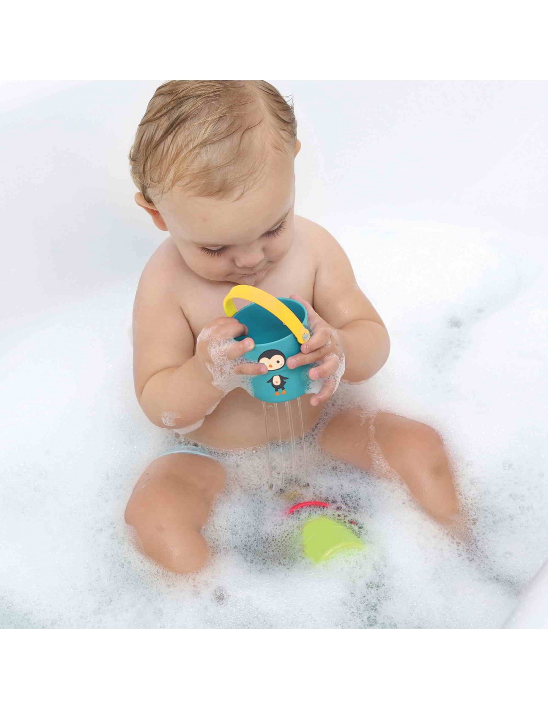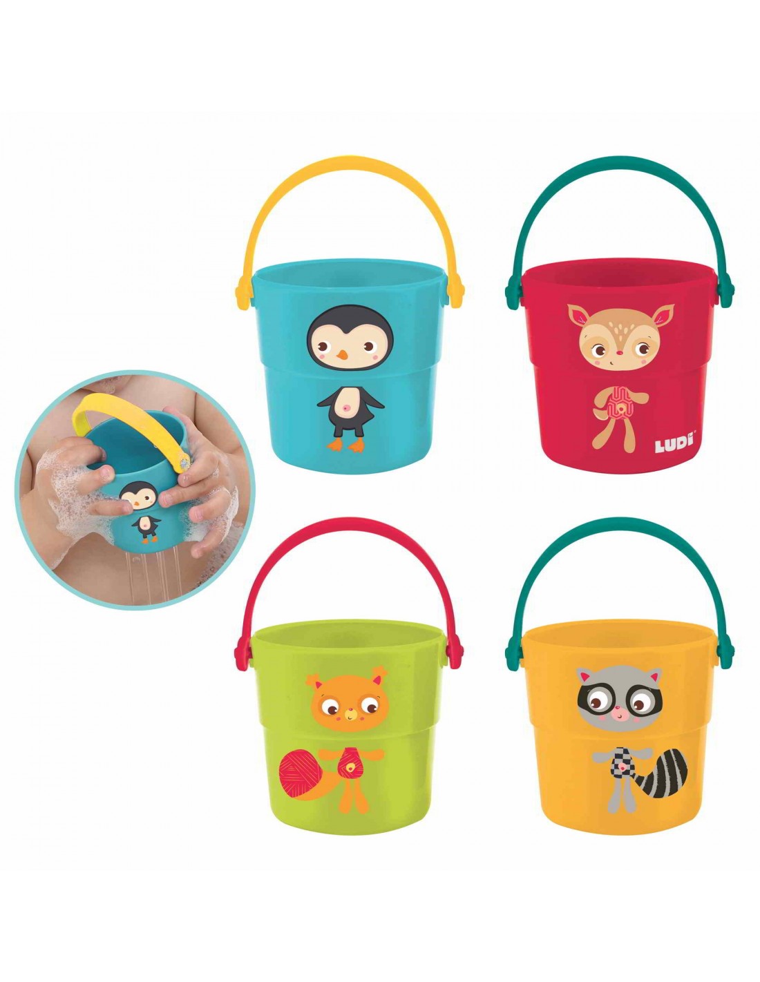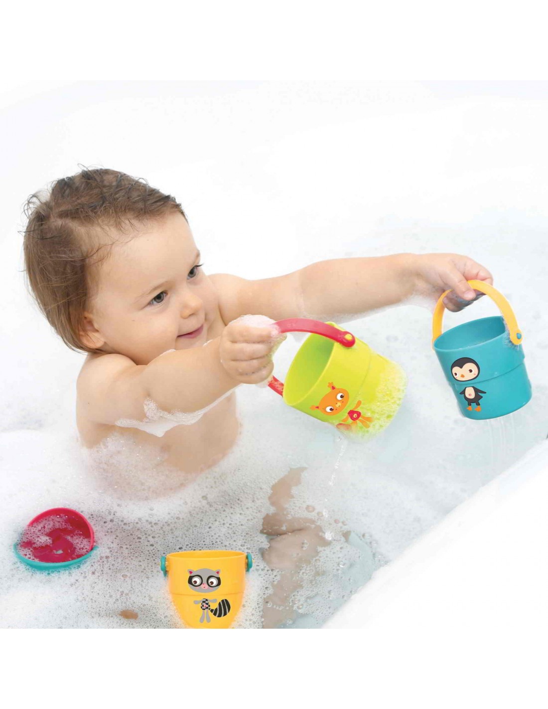 Diseñados para manos pequeñas, es fácil de agarrar los cubos gracias a sus asas. Después de un baño, los agujeros al fondo de los cubos harán muy sencillo que se vacíen de agua. ¡Esto también llamará la atención de los niños y estimulará su imaginación! Al manipular estos cubos, los peques también podrán comparar los distintos animales y tamaños de los cubos, construyendo su propia experiencia sensorial a su ritmo antes de descubrir cómo juntarlos y formar una pila.