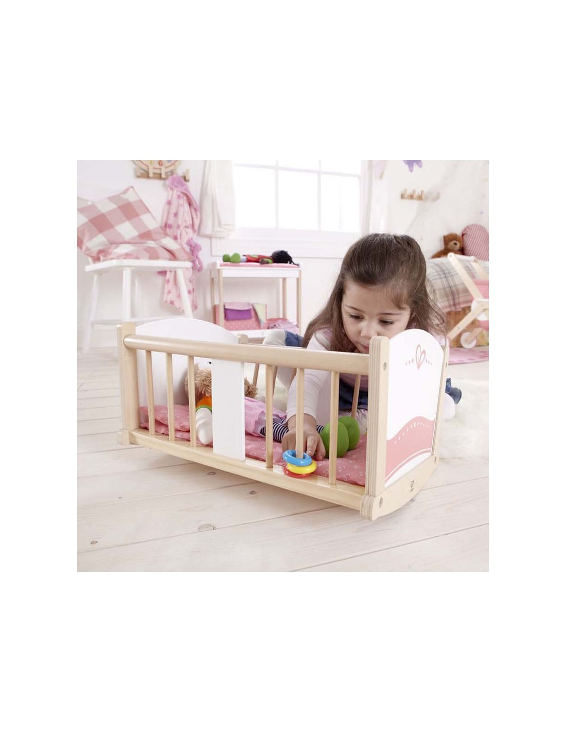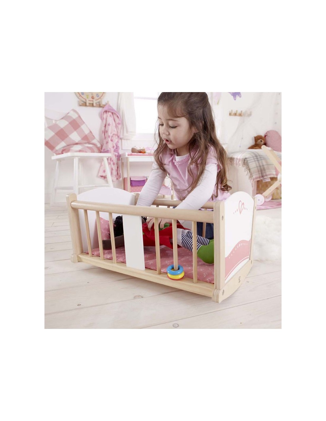 Si quieres que tu muñeca se duerma plácidamente, no hay nada mejor que esta Cuna Balancín para Muñecas de la marca Hape. Está hecha de madera robusta y está pintada con preciosos colores. Al ser tan bonita, seguro que queda fantástica en tu habitación. ¿No crees? La parte inferior de la cuna es redondeada, cosa que te permitirá balancear a tu muñeca de un lado para otro para que vaya cogiendo el sueño poco a poco. La cuna incluye un cómodo colchón y un cojín para que tu muñeca esté lo mejor posible. ¡Todo es poco para ella!
