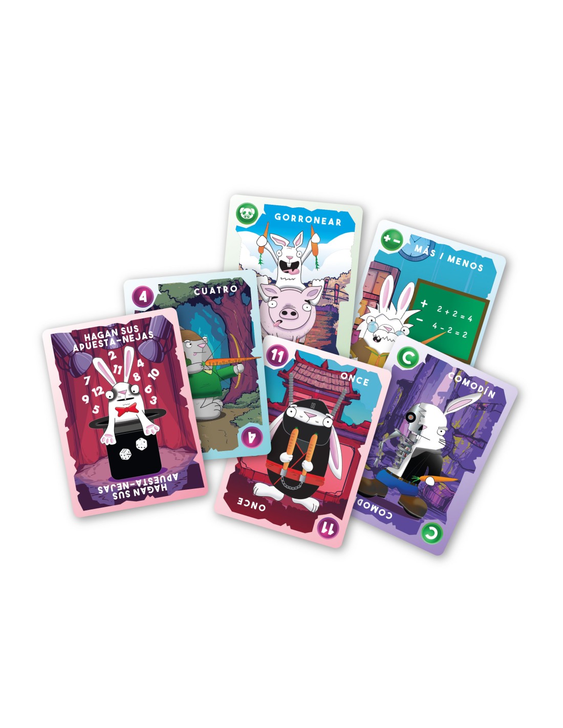 Con reglas simples y partidas rápidas de unos 15 minutos, Demasia2 Conejos es ideal para 1 a 4 jugadores a partir de 7 años. Cada turno es una mezcla de suerte, cálculo y un toque de picardía, lo que garantiza momentos llenos de risas y emoción para toda la familia.