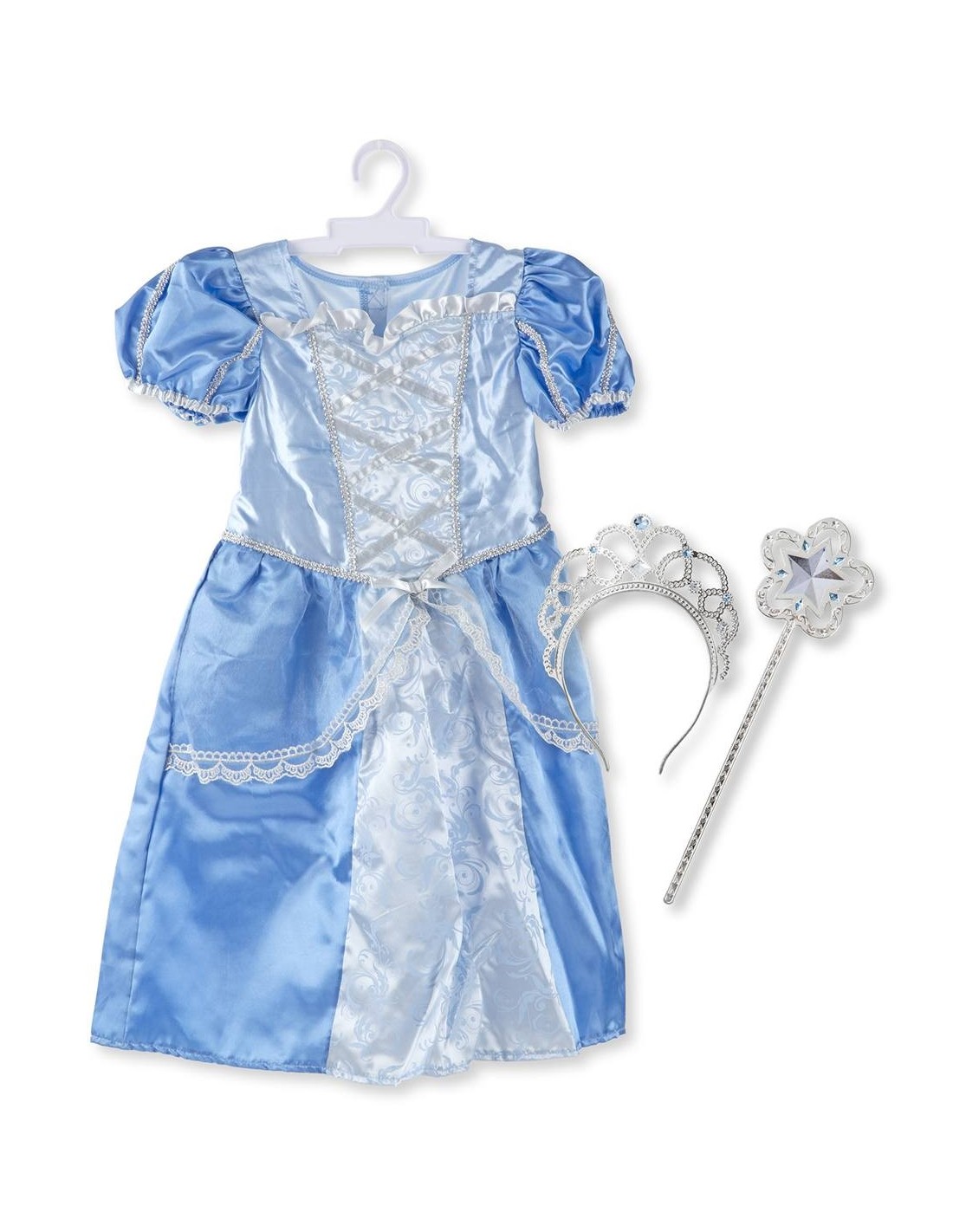 ¡Conviértete en una auténtica reina con este precioso disfraz de la marca Melissa & Doug. En el pack encontrarás todo lo que necesitas para sentarte en el castillo junto a tu adorado rey y conducir tu reino hasta un futuro mejor. Concretamente encontrarás: un bonito vestido largo de color azul y blanco (con destellos brillantes), una corona plateada con perlas rosas y una varita con la que podrás hacer tus hechizos. Seguro que estarás muy guapo o guapa con este disfraz. Un juguete perfecto para estimular tu imaginación a través del juego simbólico.