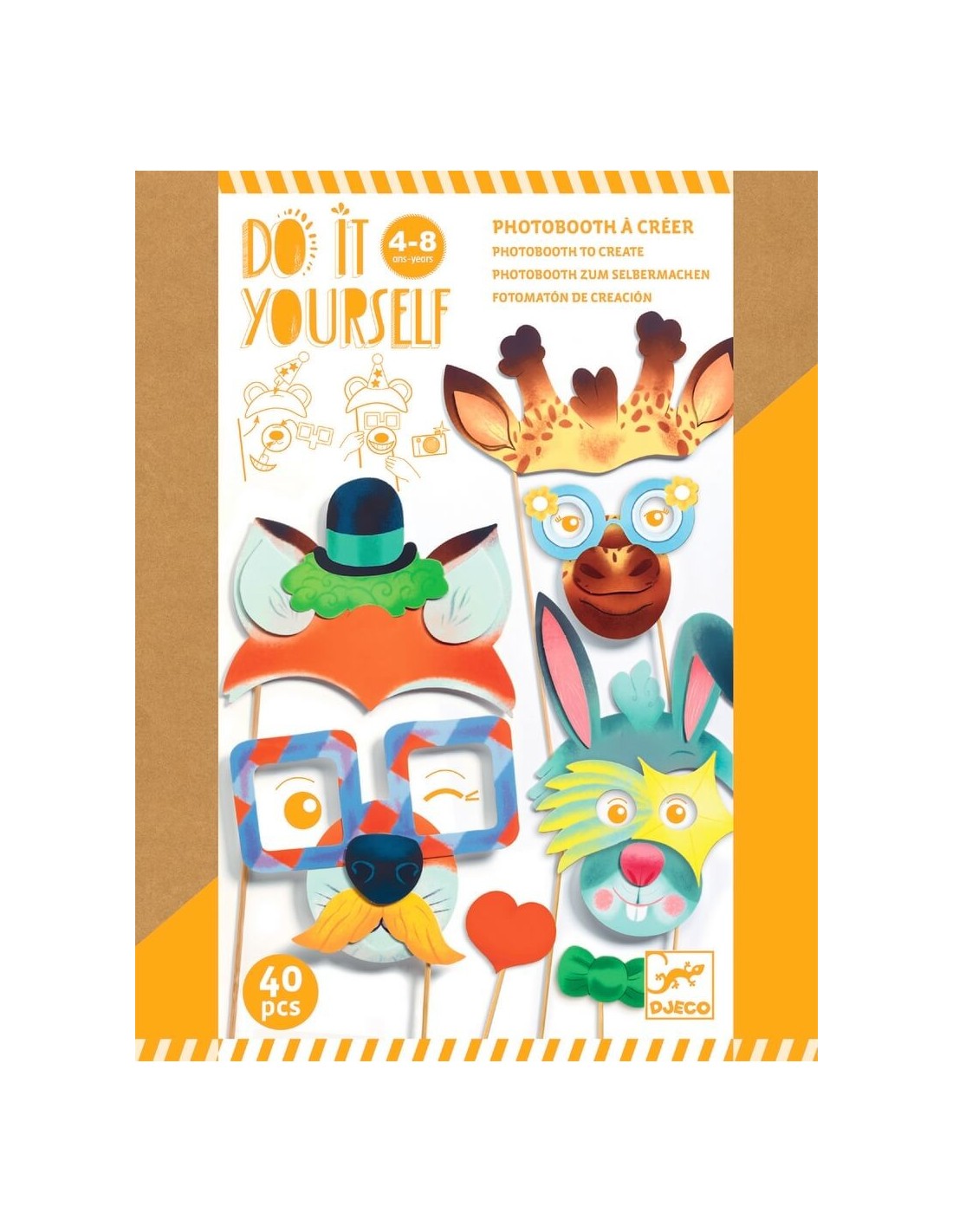 Descubre DIY Fotomatón de Djeco, el pack para crear la fiesta de los animales de la colección Do It Yourself de Djeco, una caja creativa para que los niños y niñas de 4 años se vistan a voluntad y puedan hacerse muchas fotos de recuerdo. Gafas, sombreros, bigotes, sonrisas, pajaritas ... ¡todo lo que necesitáis para divertiros! ¡Monta una fiesta con tus amiguitos y familiares y que empiece la diversión!