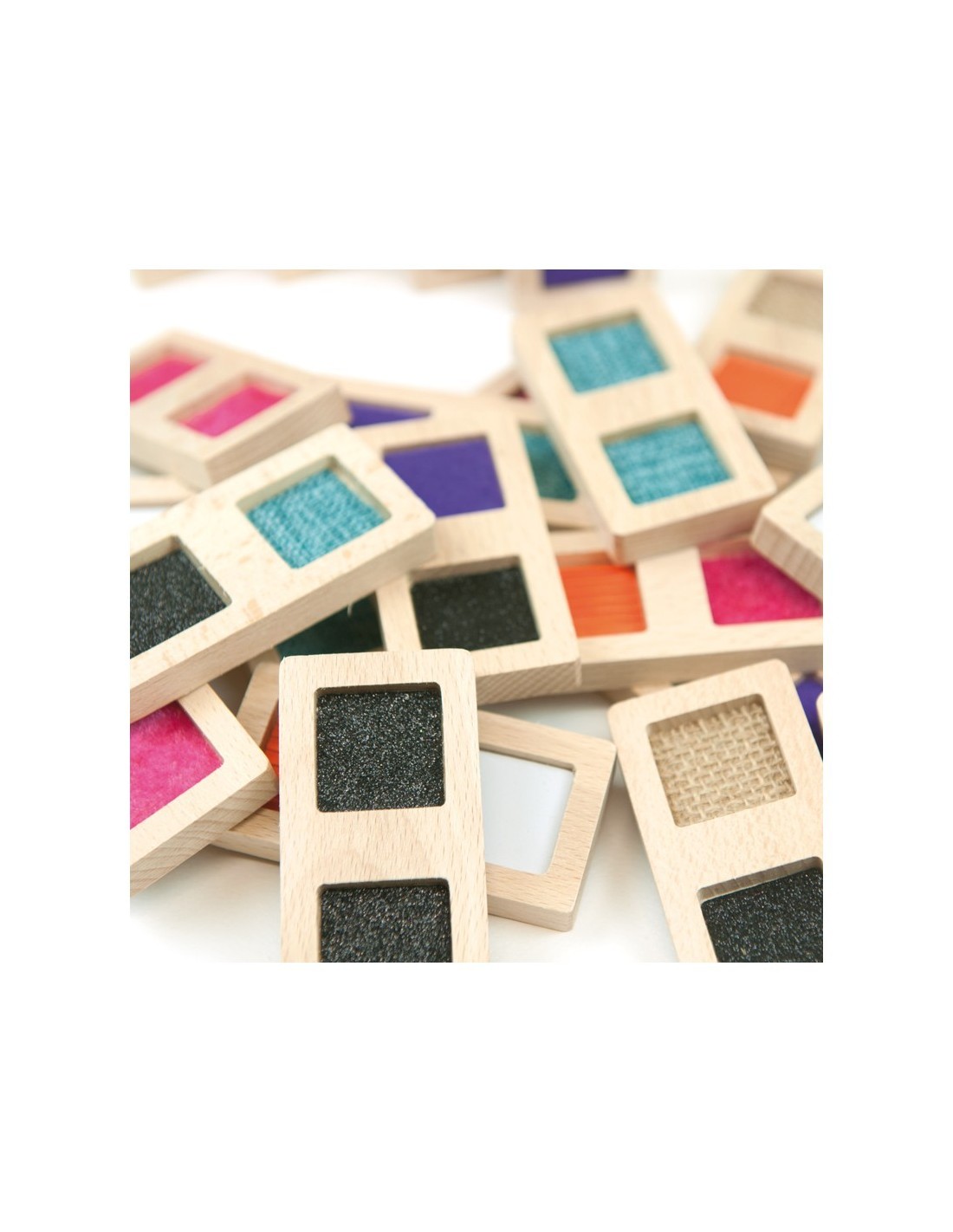 Te presentamos Domino Textures, un dominó de texturas sensorial hecho de madera natural de la marca Andreu Toys. Se trata de un material didáctico idóneo para trabajar el reconocimiento táctil, también para niños o personas con algún tipo de diversidad funcional o para el colectivo de personas mayores. Incluye un saco de tela, perfecto para su almacenamiento y transporte. Las medidas de las piezas son de 8 x 4 x 1 centímetros, perfecto para las manos más pequeñas.