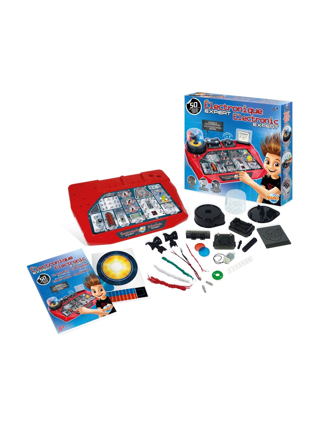 Electrónica de Experto de Buki es un kit pensado para que los niños y niñas descubran cómo funciona la electrónica a través de proyectos prácticos. La consola permite montar los componentes de manera sencilla y sin necesidad de soldar, lo que hace que las actividades sean seguras y accesibles incluso para quienes se inician por primera vez en este tipo de experimentos.