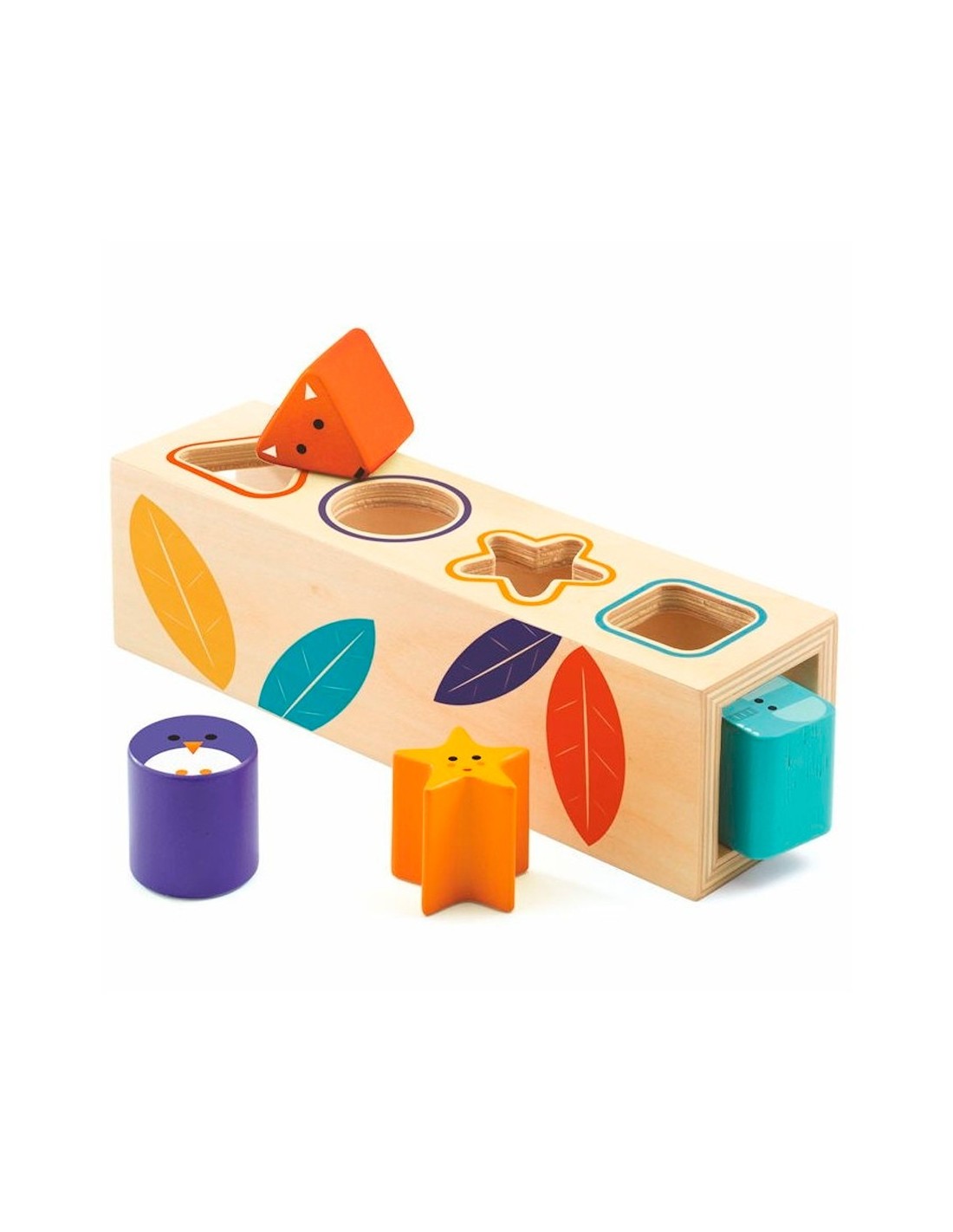 Djeco nos trae este bonito encaje fabricado en madera y decorado con hojas de colores que simbolizan el bosque. Las piezas representan diferentes animales y una estrella y cada una ha de ser introducida por su ranura correspondiente para poder entrar. Tiene una forma muy compacta para ocupar poco espacio y las medidas ideales para que los más pequeños las puedan sujetar