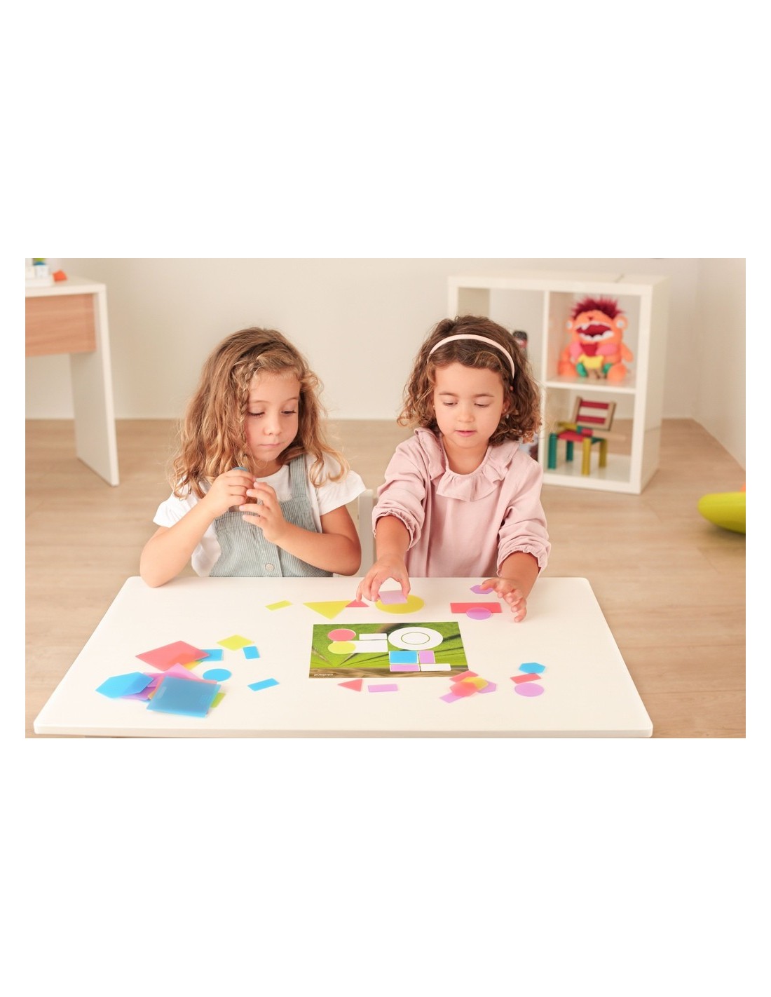Este recurso educativo se puede utilizar en las mesas de luz Miniland, que encontraréis un poco más abajo en Juguetes Relacionados, y viene con 8 hojas de actividades transparentes con niveles cada vez más diferentes y un folleto de instrucciones con ideas de juegos.