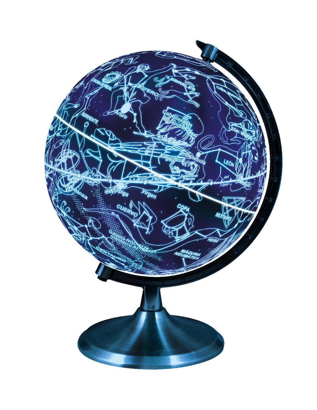 Por la noche, el globo transforma por completo su aspecto. Al encender la iluminación LED integrada, la superficie se vuelve un mapa celeste en el que aparecen representadas 88 constelaciones. Los niños pueden reconocer figuras clásicas del firmamento y familiarizarse con sus nombres mientras disfrutan de una luz suave que también funciona como lámpara de ambiente o luz de noche. Esta doble función lo convierte en un objeto versátil, útil tanto para estudiar como para crear un rincón acogedor en la habitación.
