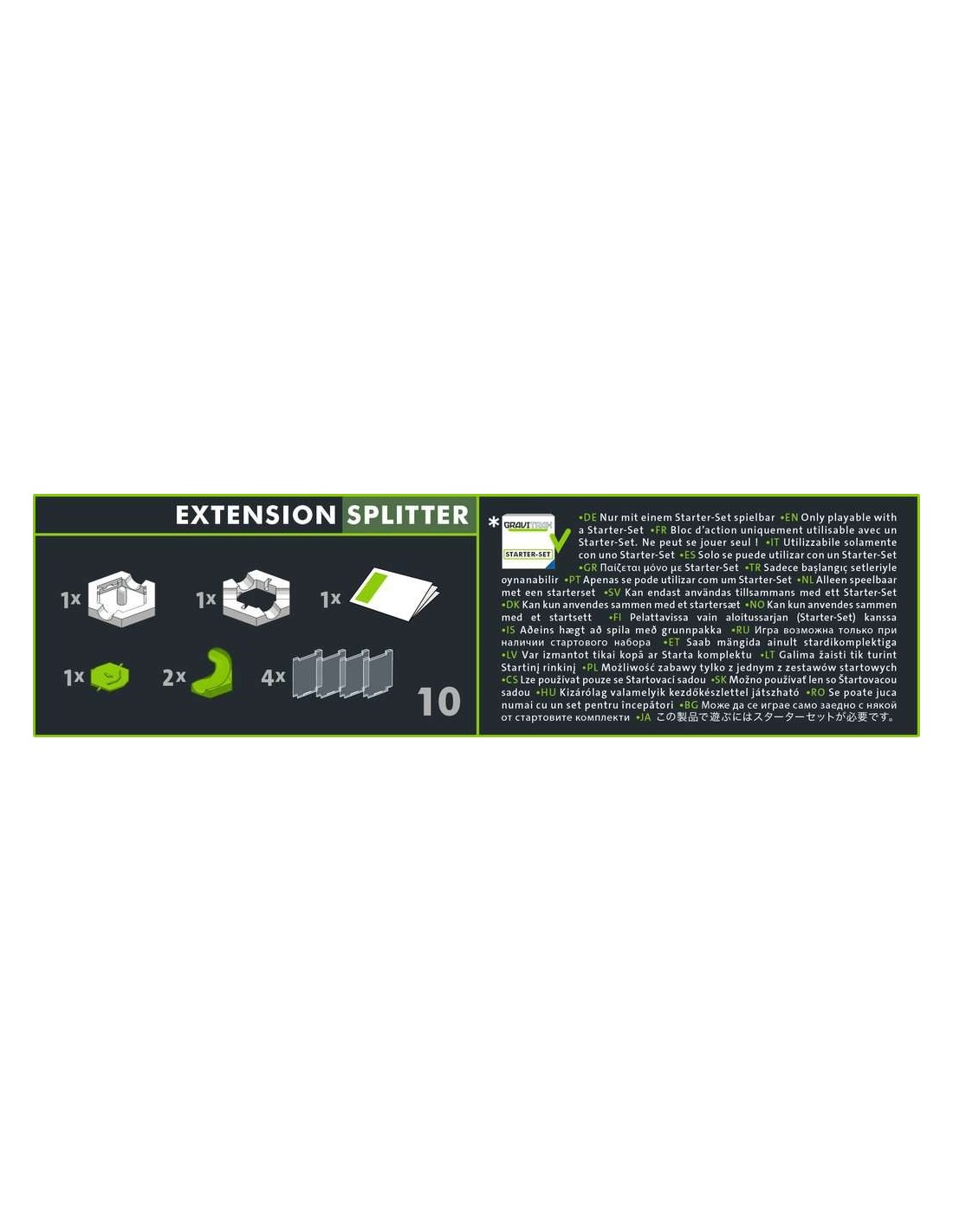 Te presentamos la GraviTrax Pro Splitter, ideal para combinar con Gravitrax Pro Starter Set y que permite que las canicas se mantengan en una pista superior si llevan suficiente velocidad, pero en caso contrario caerán por la trampilla a una pista inferior.