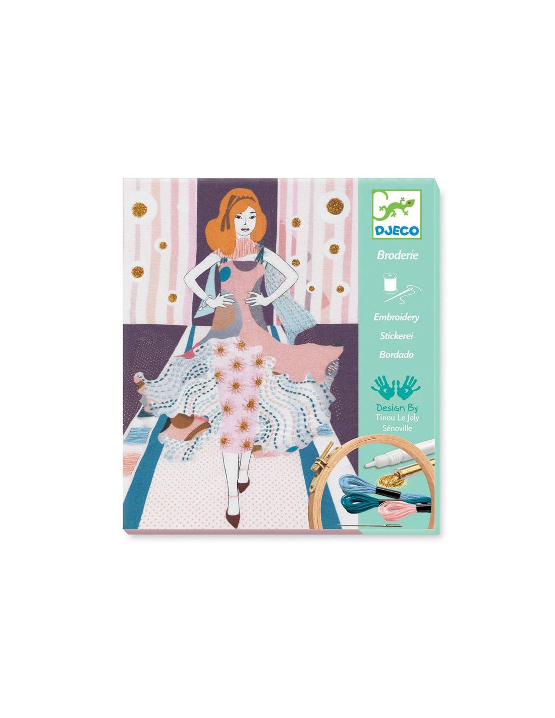 En el juego de Brodar Fashion Week de Djeco encontrarás un montón de tejidos impresos que previamente guiaran al niño al hacerlos. En los tejidos hay preciosas modelos desfilando y tu tarea será completar sus vestidos. ¡Ésta, es una iniciación al bordado que está muy "de moda"! A parte de brodar, podrás añadir diferentes elementos a los vestidos que van a realzar las diferentes creaciones. ¡No te lo pierdas!