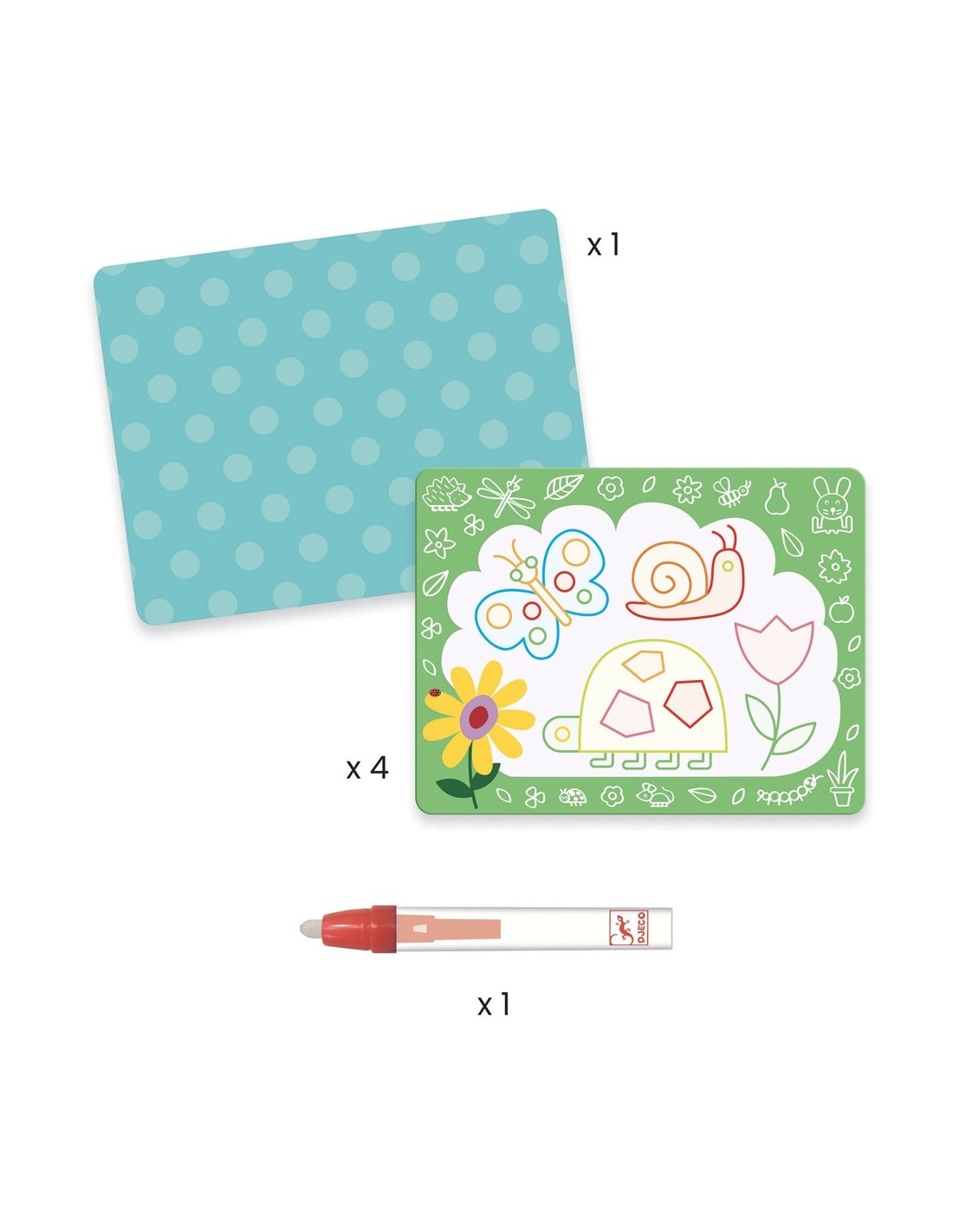 Te presentamos los dibujos mágicos para pintar con agua de Djeco, en su versión Garabato. Este juego se compone de un estuche para colorear al agua apto para peques a partir de los 18 meses. Es mágico: ¡aparecen patrones, las tablas se secan y el peque empieza de nuevo! Un lápiz grande adecuado para manos pequeñas.