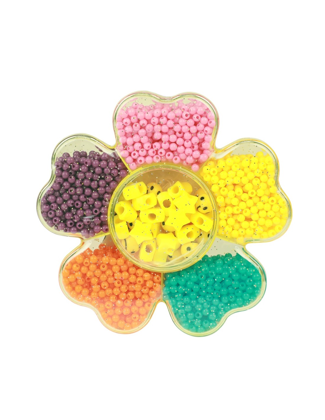 El set viene en una caja de plástico ingeniosamente diseñada en forma de flor, mariposa o manzana, que no solo sirve como contenedor organizado, sino que también agrega un elemento de diversión al proceso creativo. Además de las perlas, el kit incluye alambre y diferentes formas y colores de cuentas para permitir a los pequeños diseñadores expresar su estilo único y personalidad. La experiencia de hacer estas pulseras no solo es entretenida, sino también educativa, fomentando habilidades motoras finas, paciencia y coordinación en los niños y niñas a partir de 3 años.
