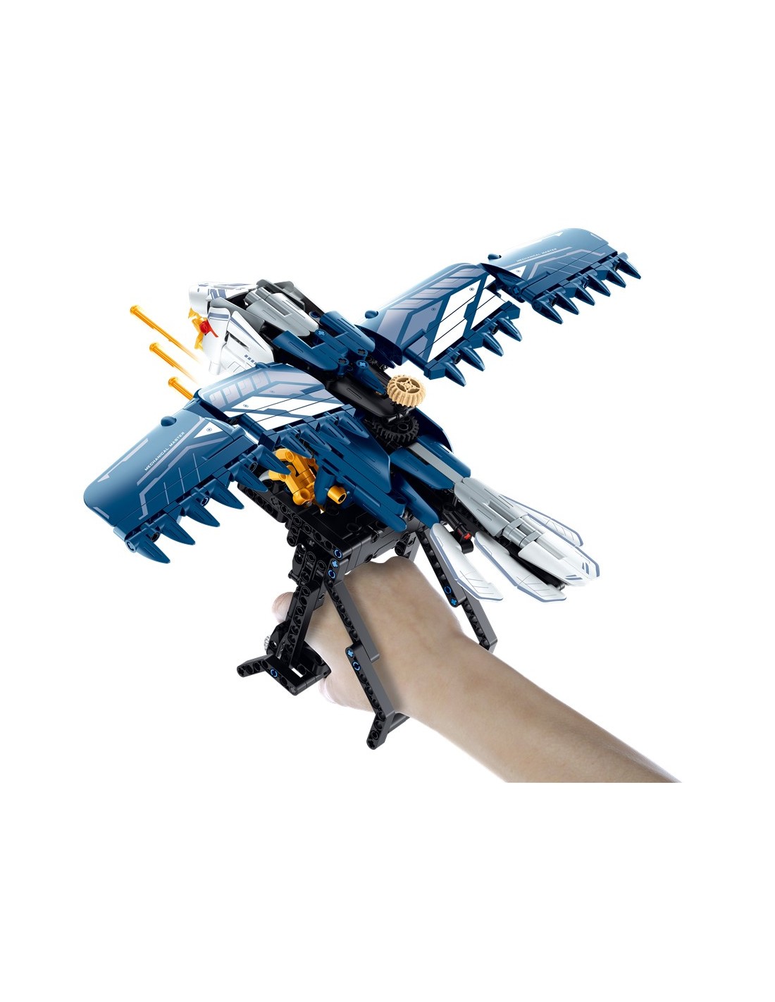 Con una estructura articulada y un diseño futurista, este robot con forma de ave se ensambla pieza a pieza hasta dar vida a una criatura mecánica que no solo sorprende por su aspecto, sino también por su funcionalidad. Una vez completado, podrás colocarlo en tu mano y lanzar proyectiles gracias a su sistema de disparo integrado, añadiendo un toque de acción al juego.