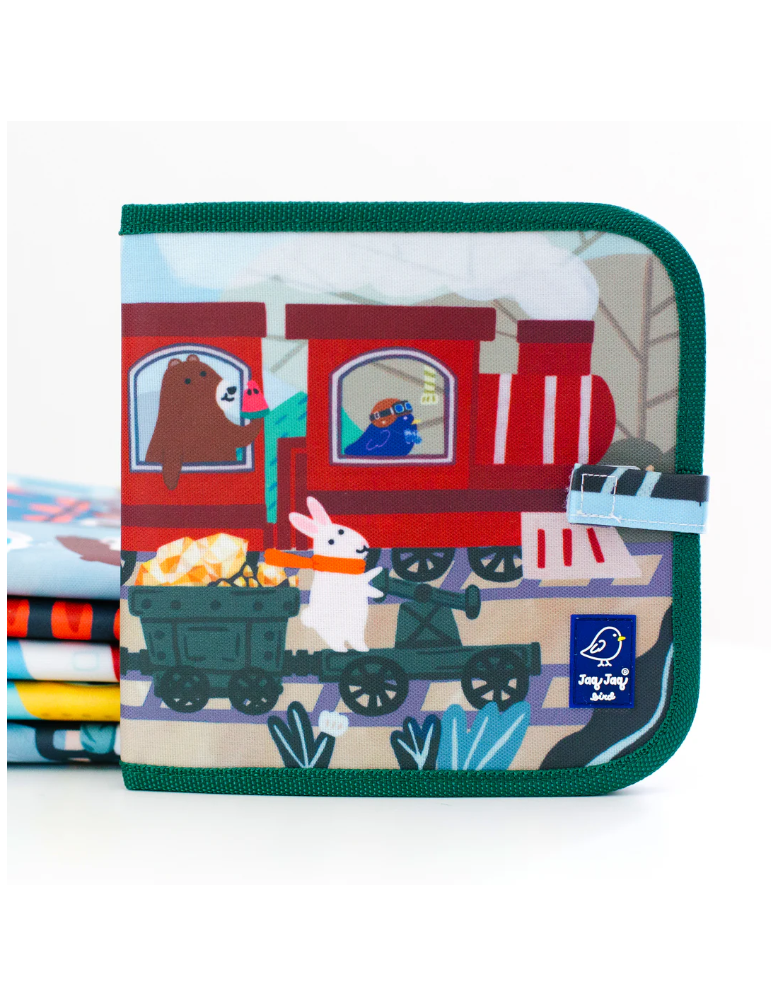 Libro Pizarra Trenes de Jaq Jaq Bird invita a los niños a embarcarse en un viaje lleno de historias, personajes y creatividad. Esta edición forma parte del universo de Jaq Jaq Bird y sus amigos, un grupo de personajes que acompaña a los pequeños mientras exploran el mundo a través de distintos medios de transporte. En este caso, el libro les abre la puerta a una aventura sobre raíles, donde cada página se convierte en un espacio para imaginar paisajes, diseñar vagones o inventar relatos sobre los compañeros de viaje.