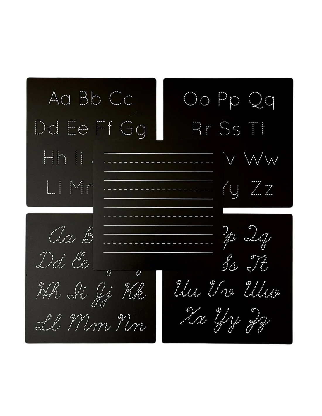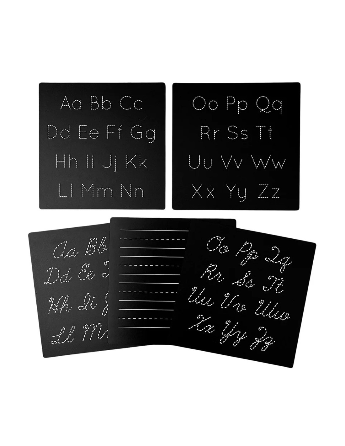 Cada pizarra mide 20,3 x 20,3 cm, un tamaño perfecto para manos pequeñas y fácil de transportar. Este producto es seguro y no tóxico, libre de BPA y ftalatos. La temática del alfabeto incluye letras mayúsculas y minúsculas, tanto en letra de imprenta como en cursiva, y una pizarra con líneas para practicar palabras y frases completas, ofreciendo un enfoque completo para el aprendizaje de la escritura.