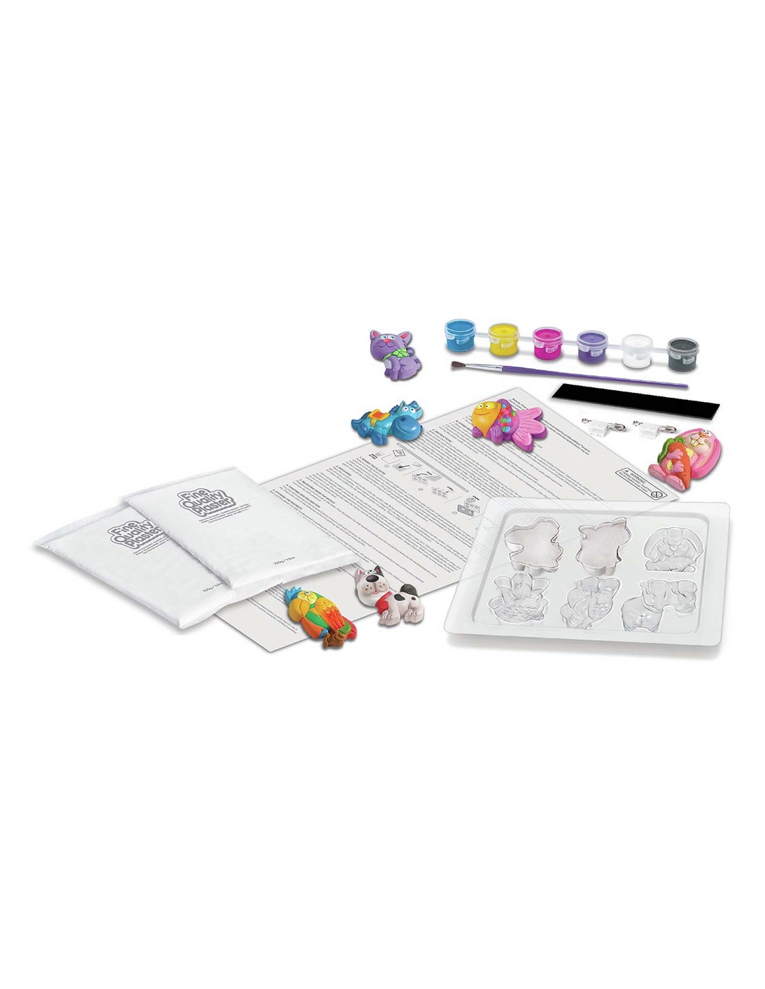 Un juego súper divertido de la marca de juguetes 4M con el que aprenderás a hacer imanes tú solito. No son imanes normales, sinó que tienen forma de divertidos y simpáticos animalitos. El proceso de fabricación es muy sencillo y el resulado que te quedará es muy bonito. Dispones de un molde con 6 formas diferentes de animales que tendrás que rellenar con una mezcla de yeso y agua. Cuando el yeso esté seco, sólo tendrás que sacar el imán de su molde y pintarlo siguiendo las instrucciones o como a ti te parezca.