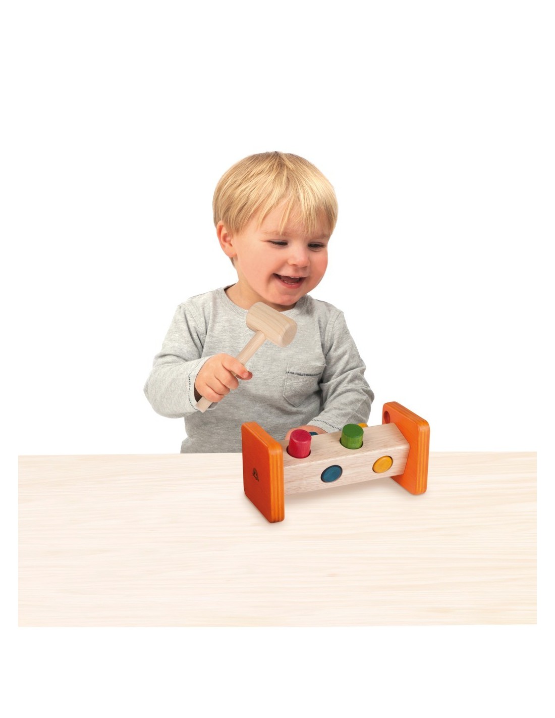 Diviértete con este fantástico juego del Pica Pica de madera natural y con un bonito toque de color a base de tintes hechos con extractos botánicos naturales. Como ves, se trata de un juguete muy orgánico y natural. El pequeño jugará a golpear la clavija por ambos lados del juego con un martillo de madera y se divertirá un montón viendo como suben y bajan. Este juego ayudará a los peques a mejorar su coordinación mano-ojo y su motricidad fina. Es un juego muy resistente totalmente pensado para recibir golpes. ¡No te lo pierdas!