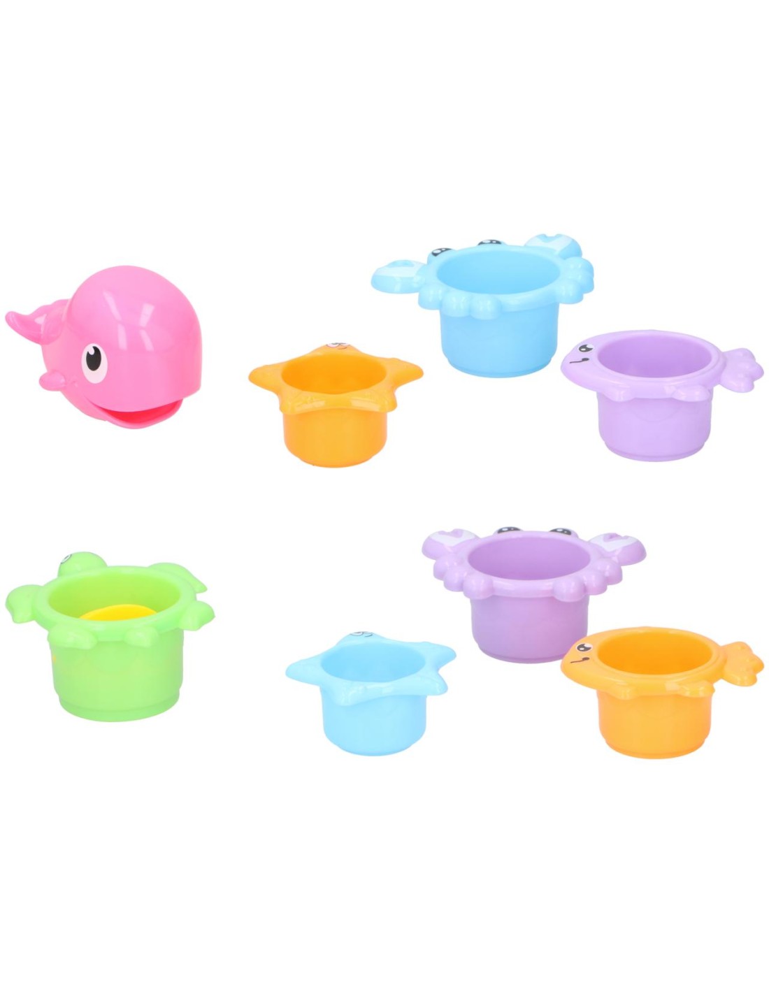 Sumérgete en la diversión con este juguete para la bañera de 4 piezas, diseñado para hacer que el tiempo del baño sea aún más emocionante para tu pequeño. Este adorable juego presenta una forma de tortuga o ballena (seleccionada aleatoriamente) y 3 coloridas tazas con encantadores motivos de animales marinos, que seguramente capturarán la imaginación de tu hijo.