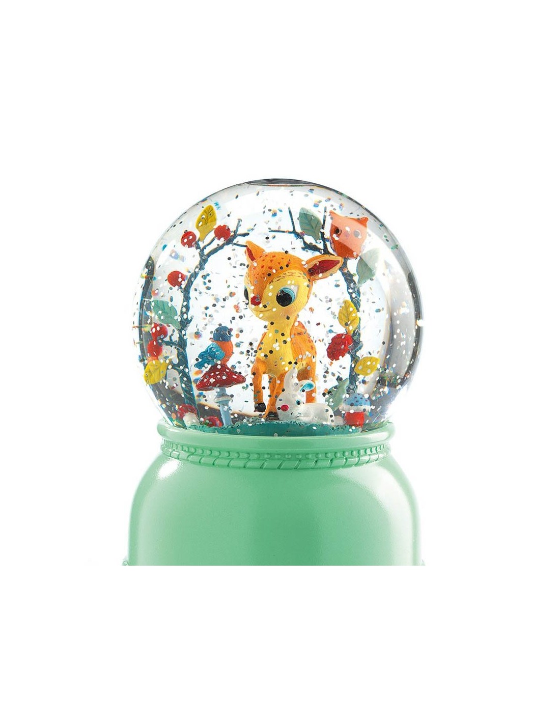 Seguro que no encontrarás una lámpara tan bonita como esta. Como ves, tiene la forma de una bola de nieve, que decorará la habitación durante el día y la iluminará de forma suave durante la noche. Solo tienes que pulsar el botón que tiene en la parte inferior y verás como la lámpara empieza a producir diferentes luces de colores y la purpurina del interior de la bola empieza a girar. ¡No hace falta que la sacudas! El mismo mecanismo de la lámpara hará que las escamas giren por toda la bola. En el interior, un dulce ciervo te acompañará noche tras noche. Además, tiene un temporizador de dos horas, así que no tendrás que preocuparte por si te duermes. Requiere 3 pilas LR6 que no se incluyen. Este producto se sirve dentro de una cómoda caja lista para ser regalada.