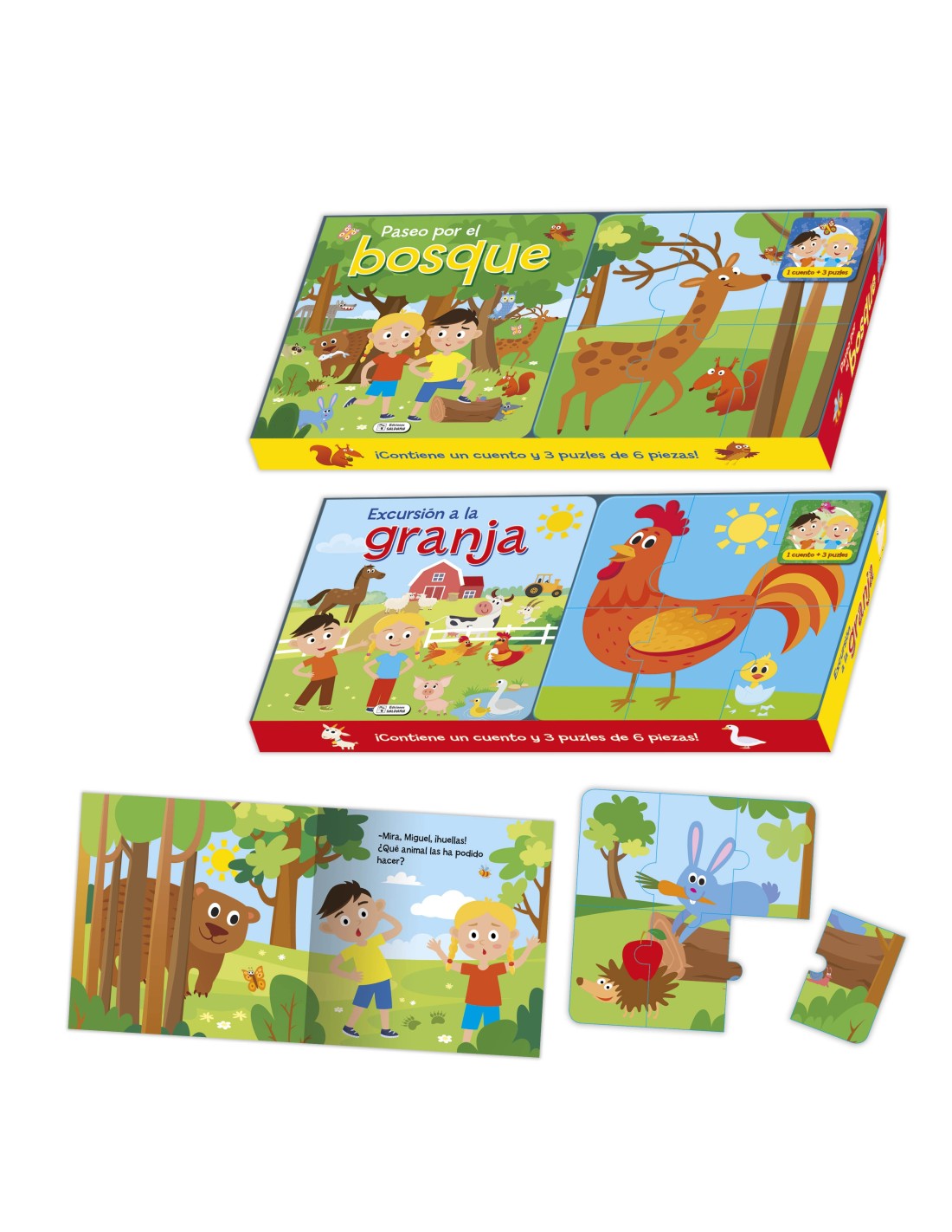 Te presentamos este fantástico libro infantil con puzles, una novedad que los peques disfrutarán mucho y disponible en 2 versiones distintas, todas igual de adorables y didácticas: paseo por el bosque y excursión a la granja.