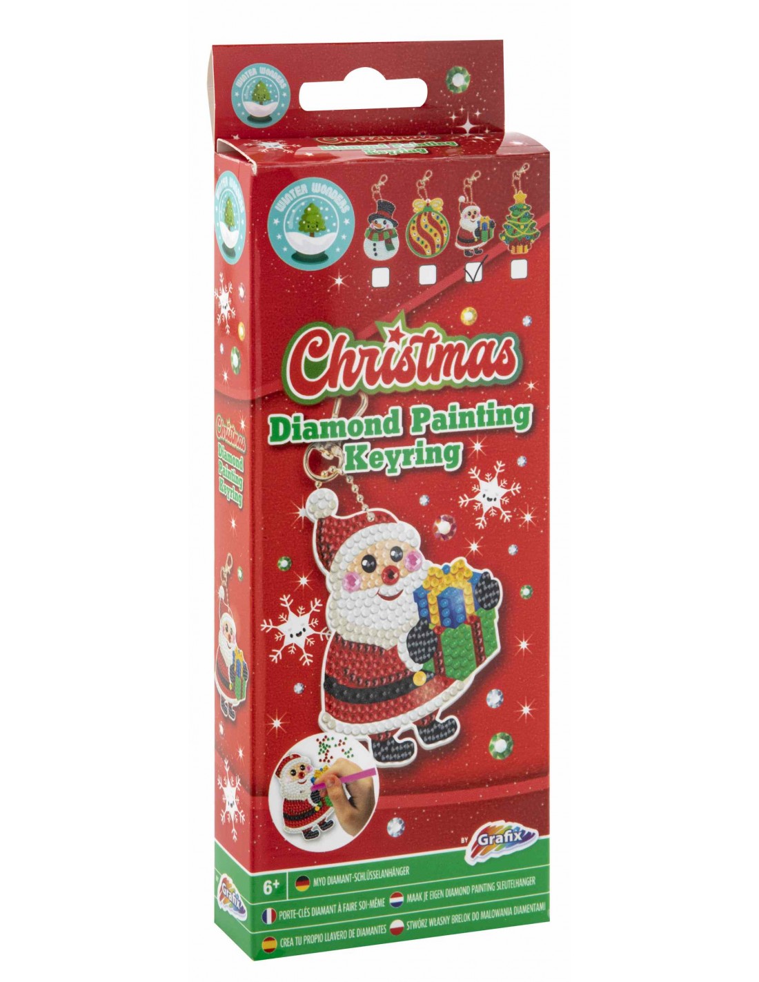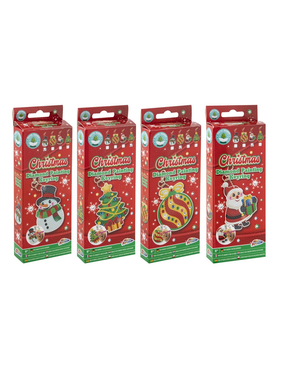 Te presentamos este adorable juego para decorar llaveros navideños con perlas de diamantes adhesivas. ¡Ya está aquí el espíritu navideño! Como puedes ver en las imágenes hay 4 variaciones de este producto, todas igual de bonitas.