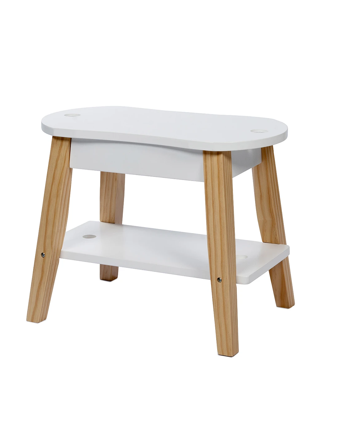 Debajo del asiento, una práctica balda ofrece espacio de almacenaje para guardar el set de limpieza, cepillos o cualquier otro accesorio de estilismo. De este modo, los pequeños jinetes podrán tener siempre todo a mano, fomentando la autonomía y la organización durante el juego.