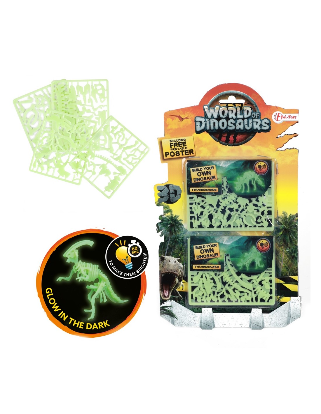 Te presentamos este divertido juego para montar dinosaurios que brillan en la oscuridad, una oportunidad perfecta para que los pequeños amantes de los dinosaurios pongan a prueba sus habilidades manuales y además disfruten de la maravillosa recompensa de ver sus creaciones brillar en la oscuridad. ¡Una preciosa decoración para los arqueólogos de la casa! Esta novedad es un juguete ideal como detalle para niños y niñas.
