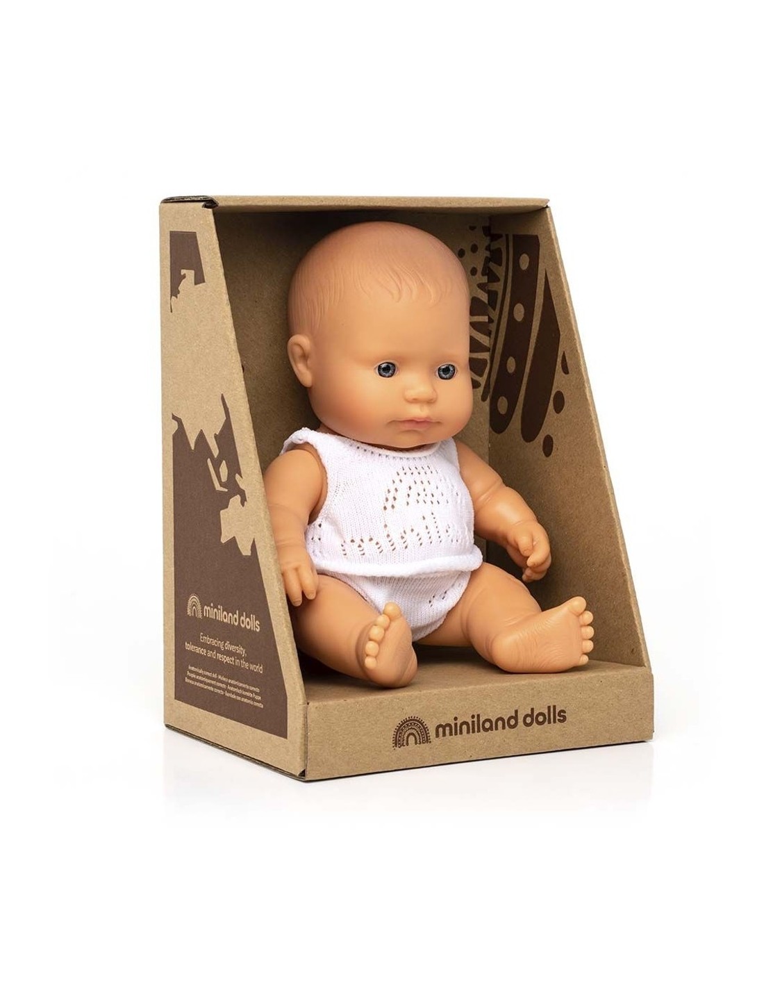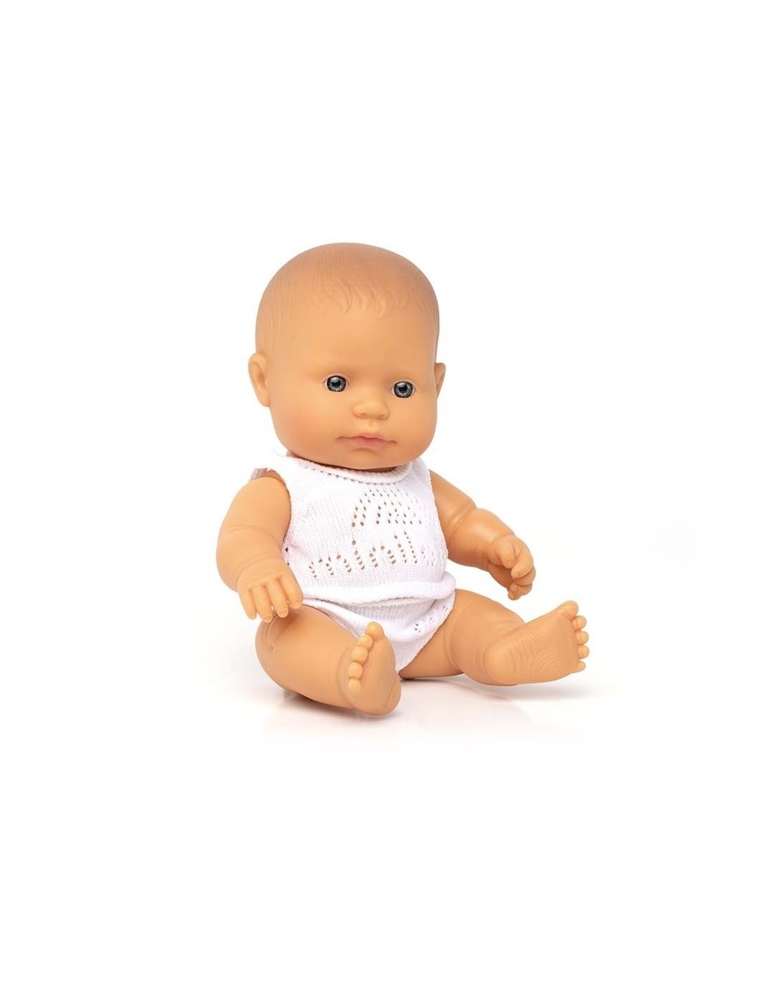 De la mano de la marca Miniland te traemos esta adorable muñeca bebé caucásica de 21 cm. Con un cuerpo articulado y ligeramente perfumado, con este muñeco bebé de Miniland podréis jugar en todos lados, hasta en la bañera, pues está hecho de vinilo suave, resistente y flexible, además de hermético.