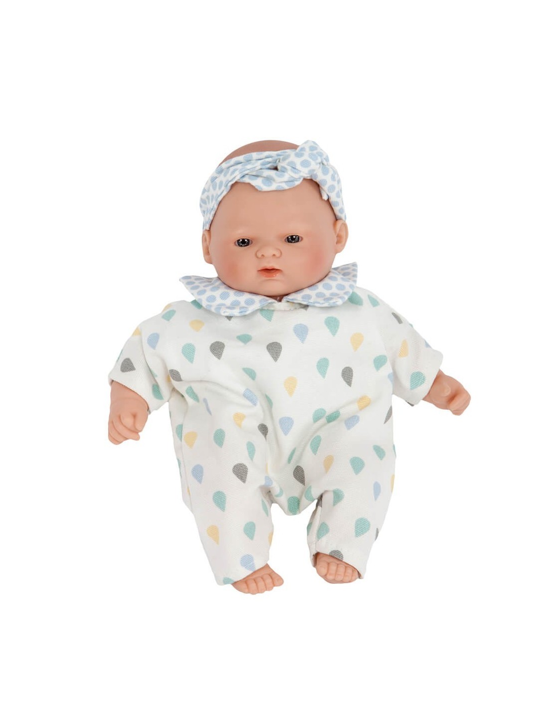 Esta muñeca de la marca Barrutoys está hecha con mucho mimo y con mucho amor para que tú la puedas disfrutar. Se trata de la Muñeca Gotas Azul y Verde y, como ves, tiene una carita encantadora. Lleva un bonito pijama de color blanco con un estampado de gotitas. En la cabeza lleva un precioso pañuelo de color blanco y azul que le queda genial. Está hecha en España y a mano. Está fabricada con algodón y vinilo, cosa que hace que sea muy agradable al tacto. Además, se puede lavar a máquina a 30º. ¡Ya no tienes excusa para conseguir esta fabulosa muñeca!