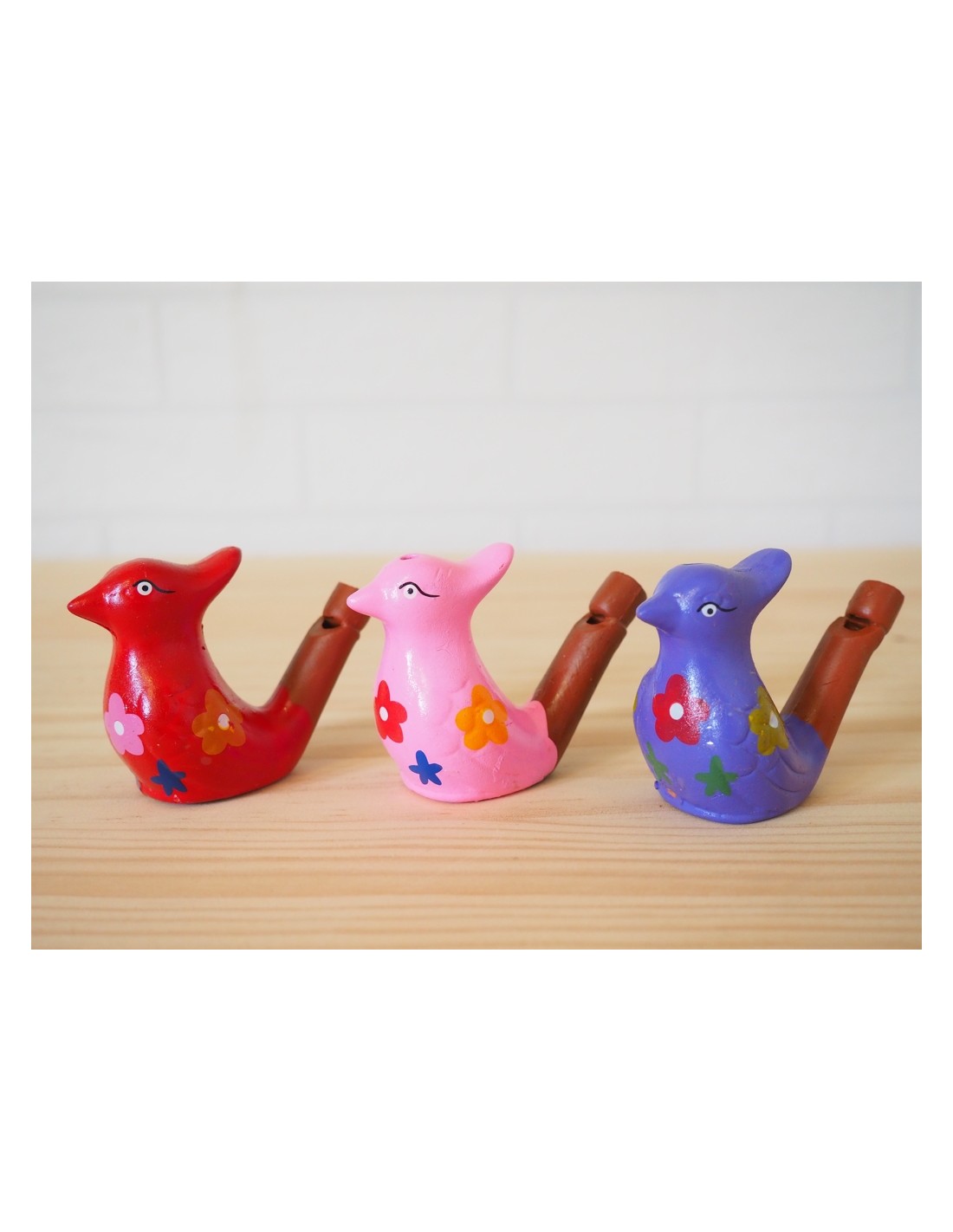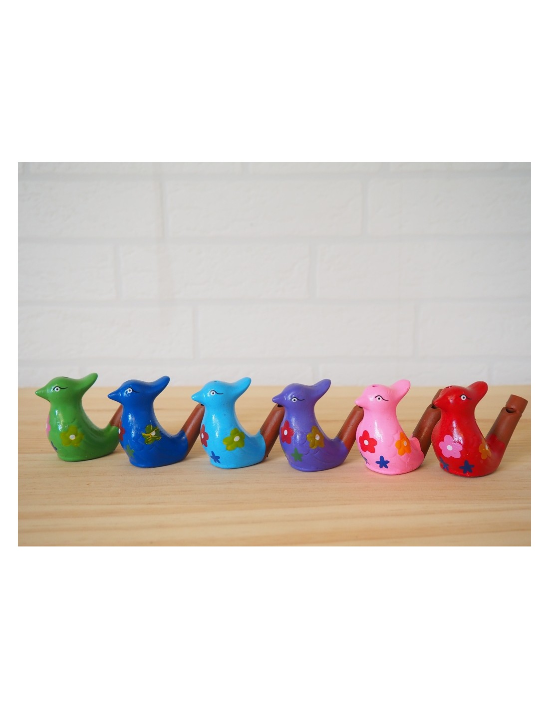 Disponible en varios colores y decorado con delicados motivos florales, este silbato de agua es tanto un juguete entretenido como una pieza decorativa con encanto. Su uso no requiere pilas ni baterías, lo que lo hace una alternativa ecológica y libre de tecnología, perfecta para desconectar y disfrutar de la simplicidad del sonido natural.