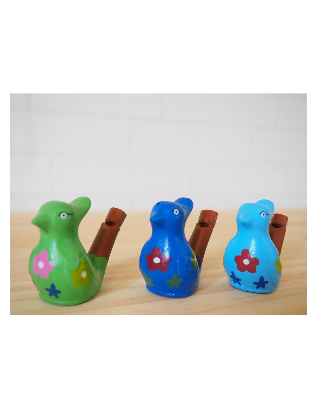 Este juguete tradicional es ideal para estimular la curiosidad de los más pequeños por la música y el sonido. Al soplar suavemente en la boquilla, el agua en su interior crea un efecto burbujeante que imita el canto de un pájaro. Es un artículo perfecto para fomentar la experimentación sensorial y el juego libre.