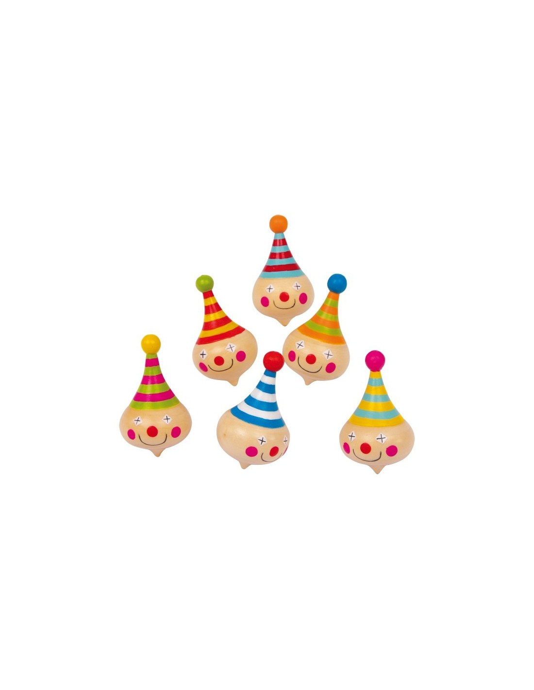 Peonza de madera con forma de payaso. Una preciosa peonza de gran calidad y con grandes acabados. Serán perfectas para que practiques tu motricidad fina y vayas mejorando tu manipulación con los dedos. Hay diferentes modelos de diferentes colores. Precio unitario.