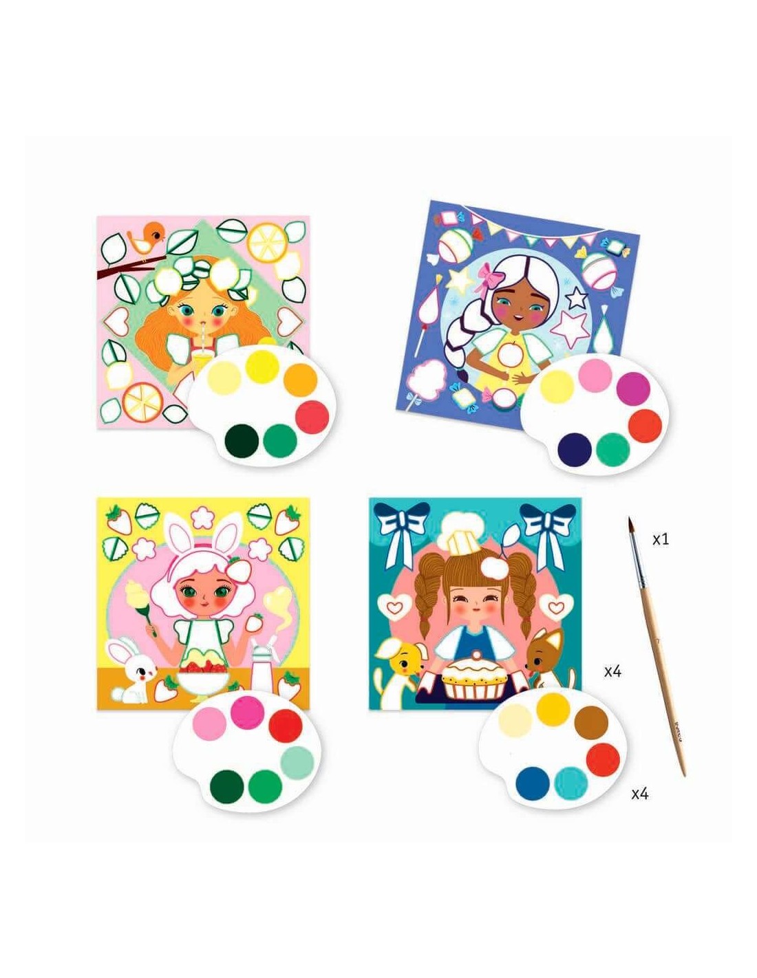 Descubre las cartas para pintar La Merienda de Djeco, un pasatiempo creativo divertido y original basado en la pintura con acuarelas. Esta actividad manual está pensada para niños y niñas a partir de 6 años y es ideal para disfrutarla en días en casa, con amiguitos y familia. Con 4 tarjetas distintas, que protagonizan cuatro preciosas reposteras preparando la merienda, los peques podrán dar rienda libre a su creatividad mientras siguen los patrones de colores que se marcan.