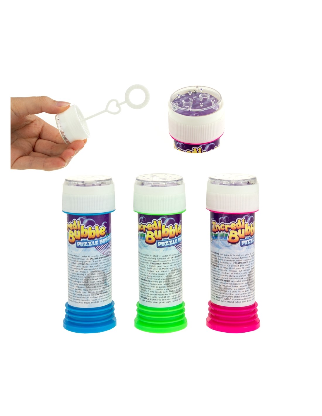 Este es el clásico pompero de toda la vida con un circuito en el tapón con el que tantos hemos disfrutado de pequeños. Las pompas siempre divierten a niños y niñas que las perseguirán y tratarán de atrapar mientras lo pasan en grande. Un juguete muy económico si quieres tener un detallito con varios peques, en la escuela o en cualquier otra ocasión.