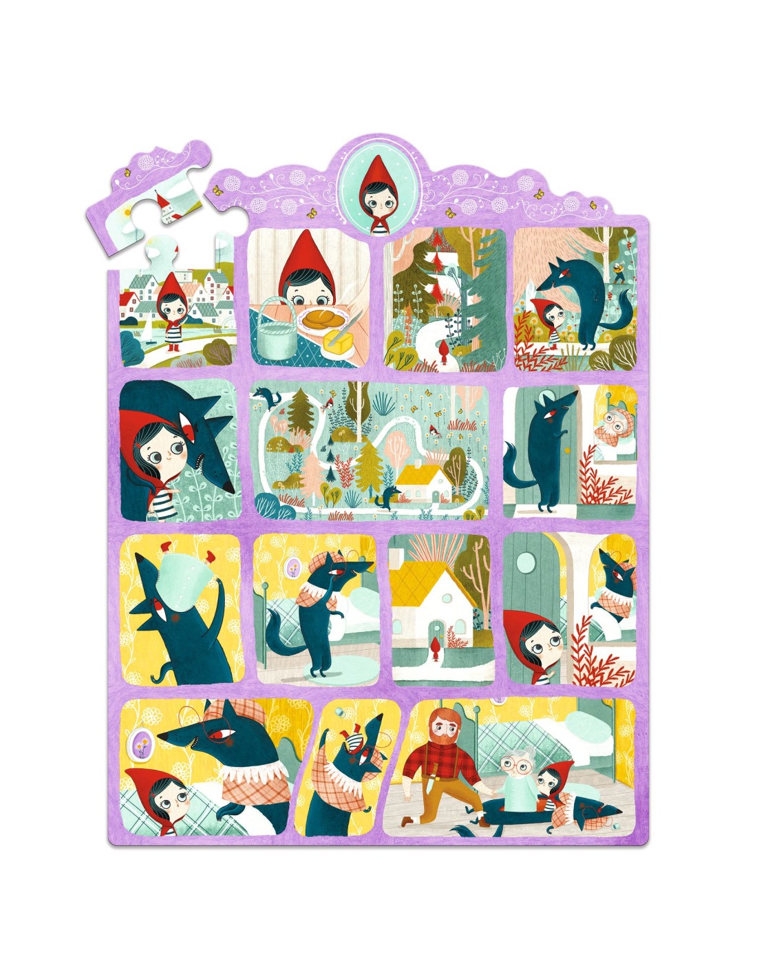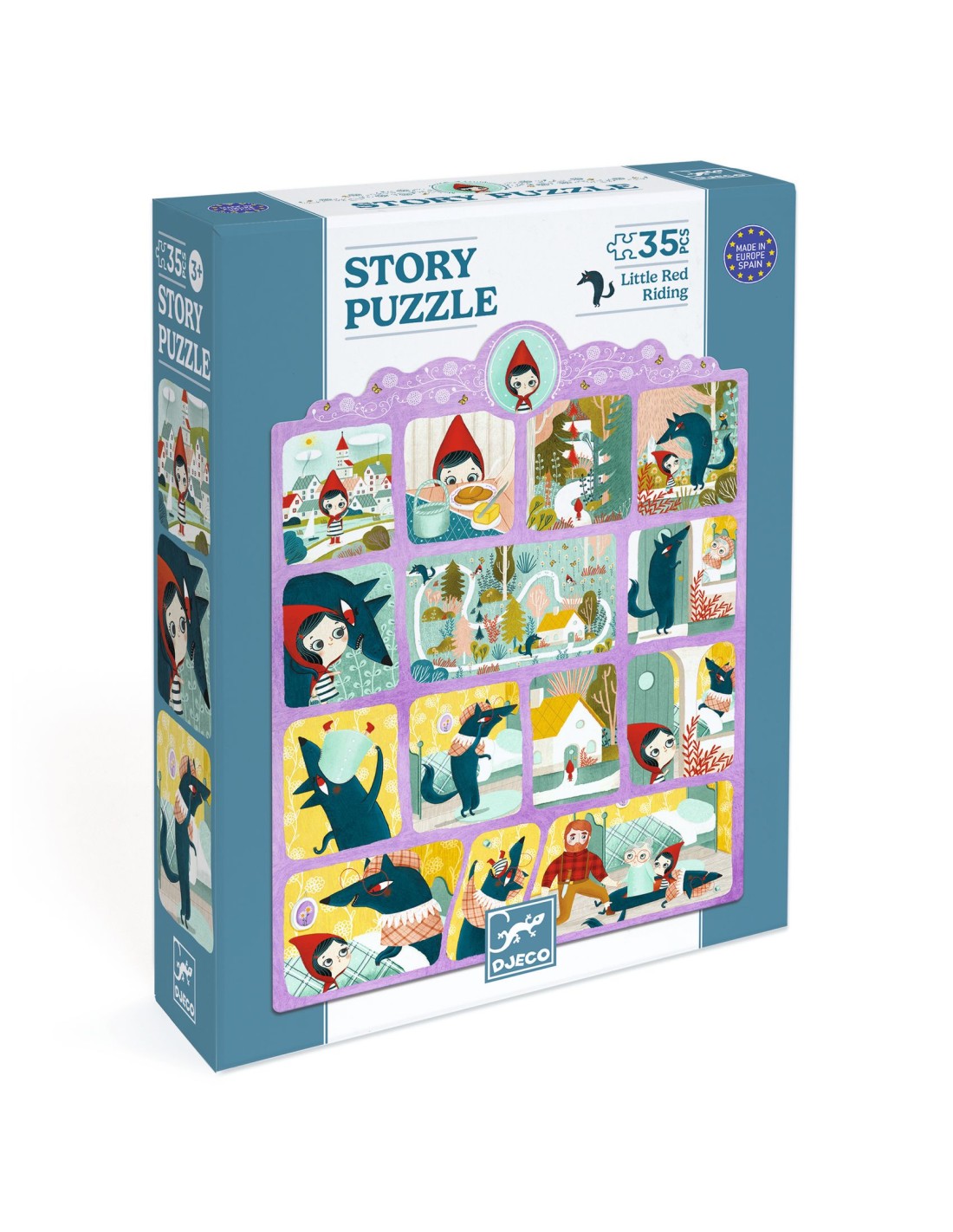 El puzle Cuento Caperucita Roja de Djeco es una opción maravillosa para los pequeños a partir de 3 años que comienzan a explorar el mundo de los cuentos clásicos. Este rompecabezas de 35 piezas está inspirado en el famoso relato de “Caperucita Roja” y se presenta en forma de un original cómic mudo, donde cada imagen invita a recrear la historia sin necesidad de palabras. Gracias a este formato visual, los niños pueden interpretar la trama de diversas formas, permitiendo que su imaginación y creatividad den vida a nuevos detalles e interpretaciones del cuento.