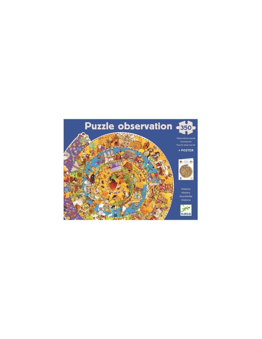 Te traemos, junto a la marca francesa Djeco, este Puzle de observación de Historia, con el que podréis conocer toda la Historia de la Evolución con detalles sobre el origen del ser humano y su evolución hasta el presente. ¡Será interesantísimo!