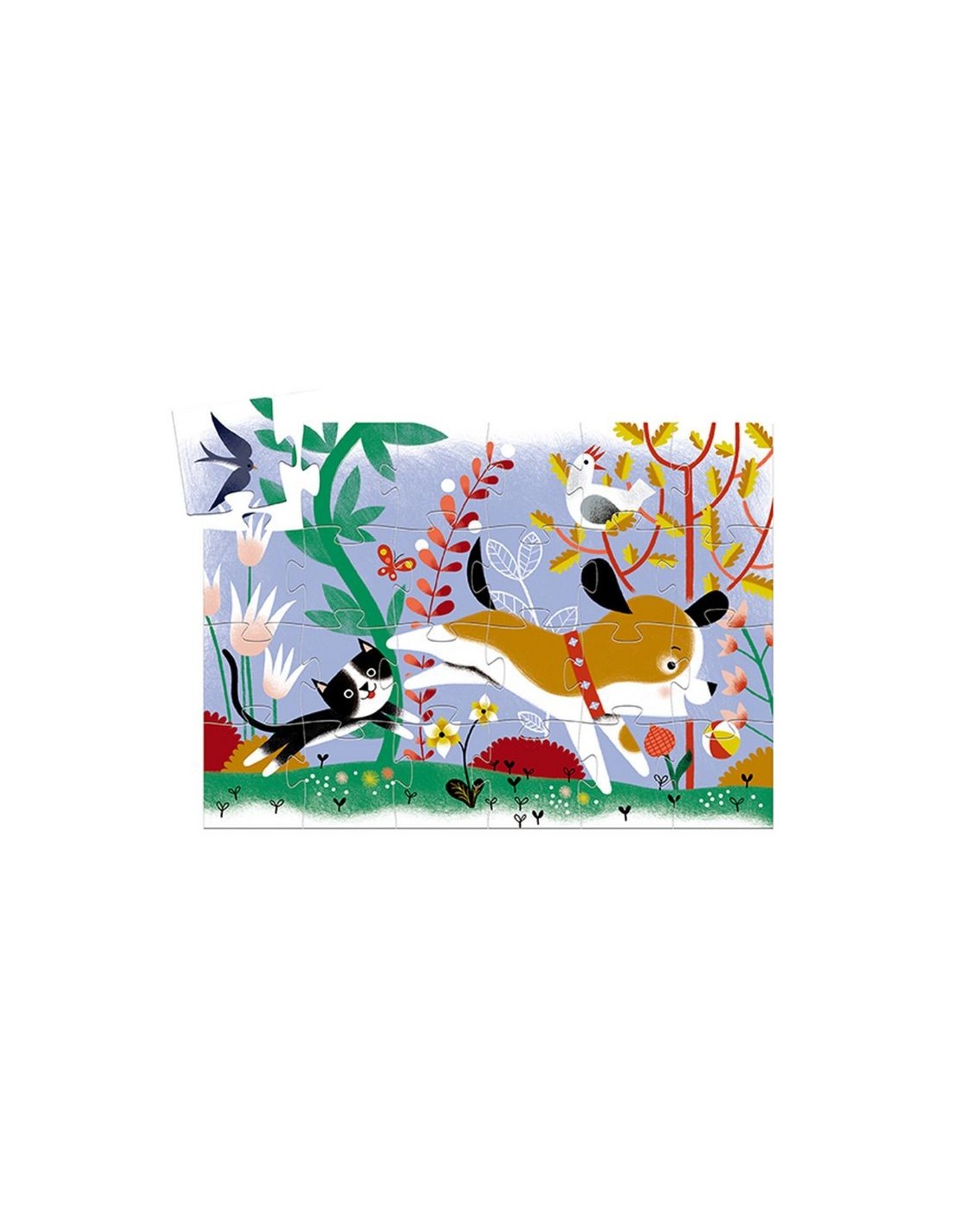 Te presentamos a Firmin, un gracioso perrito que juega en el jardín con su amiguito el gato. Él es protagonista de este puzzle de silueta de Djeco y está deseando conocerte para que podáis divertiros juntos mientras vas reconstruyendo la imagen en la que aparece.