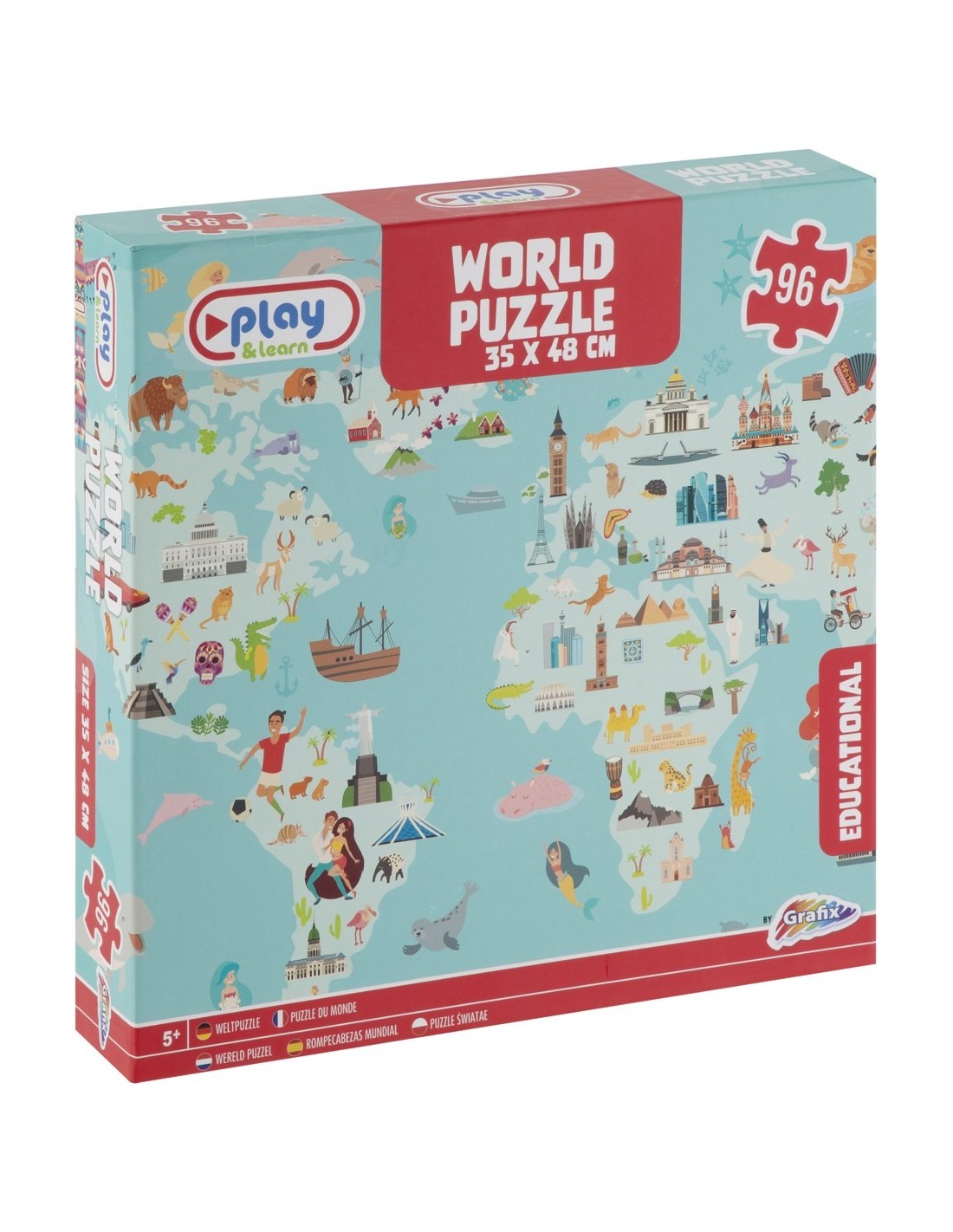 Te presentamos este fantástico puzle del mundo de 96 piezas, perfecto para que los peques de la casa no solamente monten este precioso rompecabezas, sino para que también aprendan y refuercen sus conocimientos sobre geografía, y puedan llevar muy bien esa asignatura en la escuela.