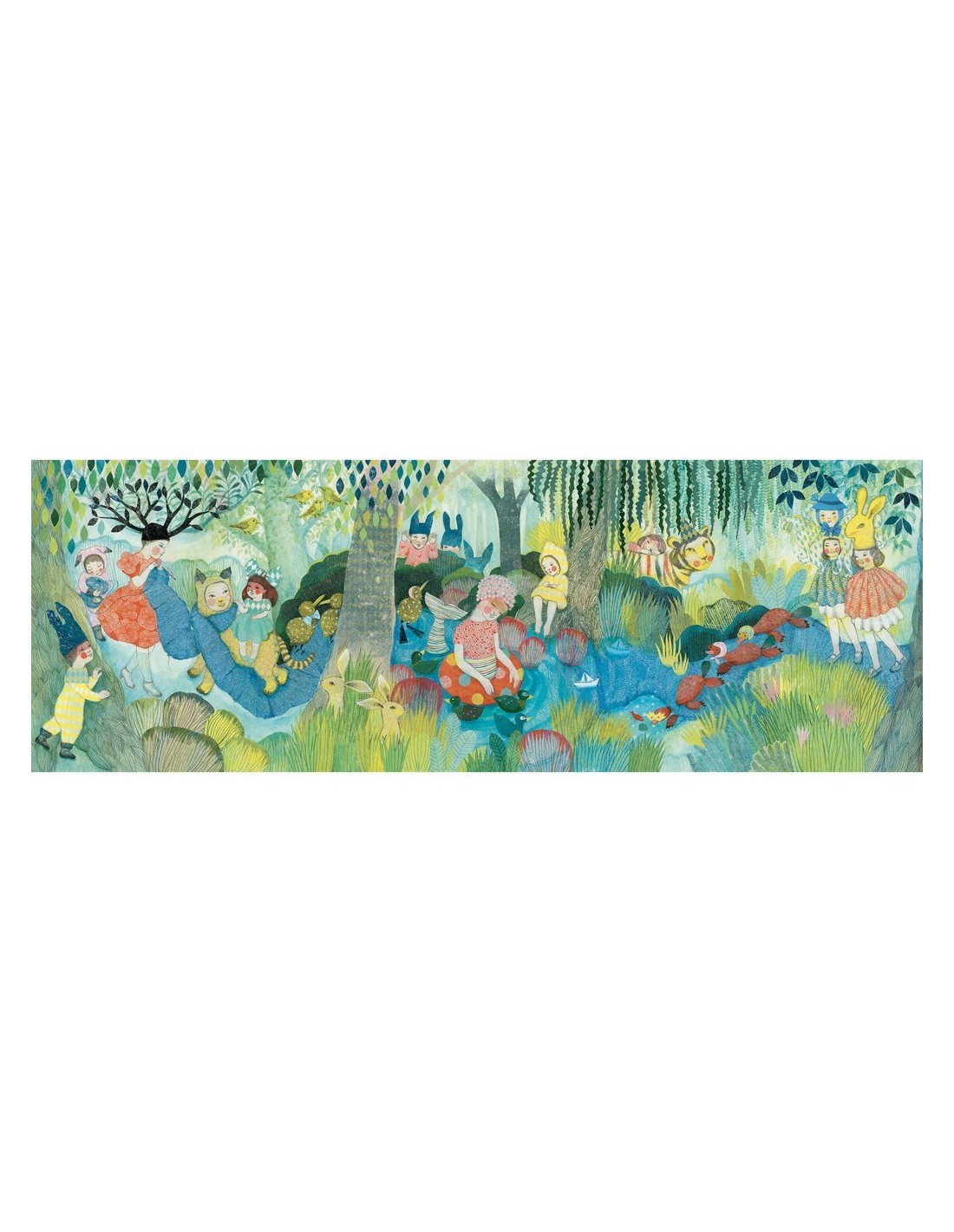 De la mano de la marca francesa Djeco te presentamos este puzle galería River Party, un puzle de 350 piezas. Hermosos colores, un bosque mágico de ensueño mientras todos festejan... ¡Eso es el puzle galería River Party de Djeco!