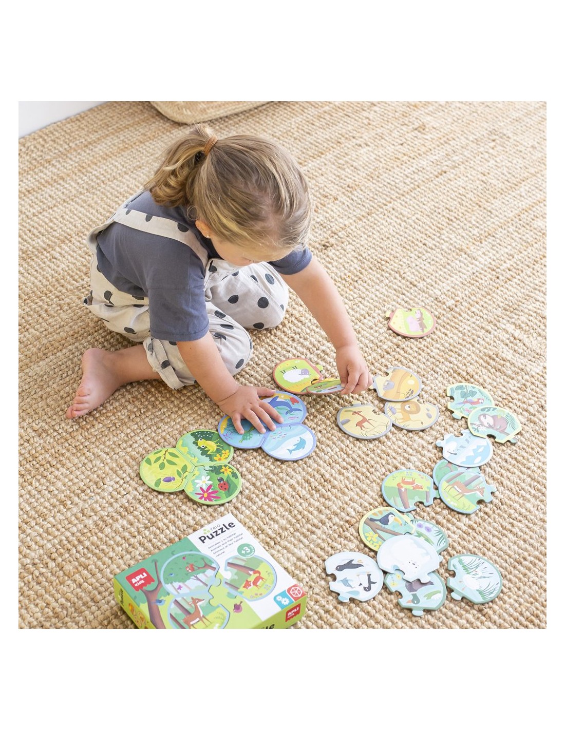 Introduce a los más pequeños en el fascinante mundo de la naturaleza con nuestro Puzle Trío Animales y su hábitat. Este juego de asociación ofrece una experiencia educativa y divertida, ideal para niños a partir de 3 años. El set incluye un total de 24 piezas redondeadas con un diámetro de 9 cm, que permiten formar 8 puzles distintos de 3 piezas cada uno.