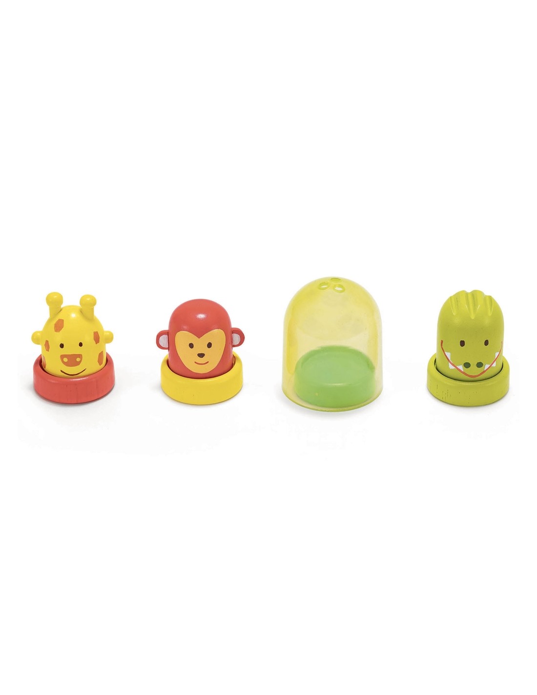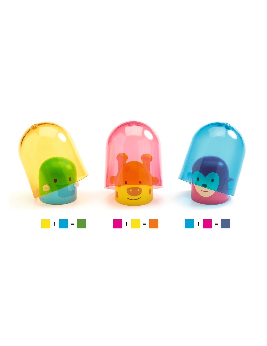 El Rainbow Train de Djeco cuenta con 3 vagones extraíbles y un total de 13 piezas repartidas en 4 bases, 4 tapas y 5 personajes. Estas piezas tienen los mismos colores entre sí, para que los peques puedan emparejarlas y combinarlas, formando efectos de color y experimentando cómo los distintos colores combinan entre sí. Pon una base amarilla sobre la jirafa. ¿Qué tal le queda?