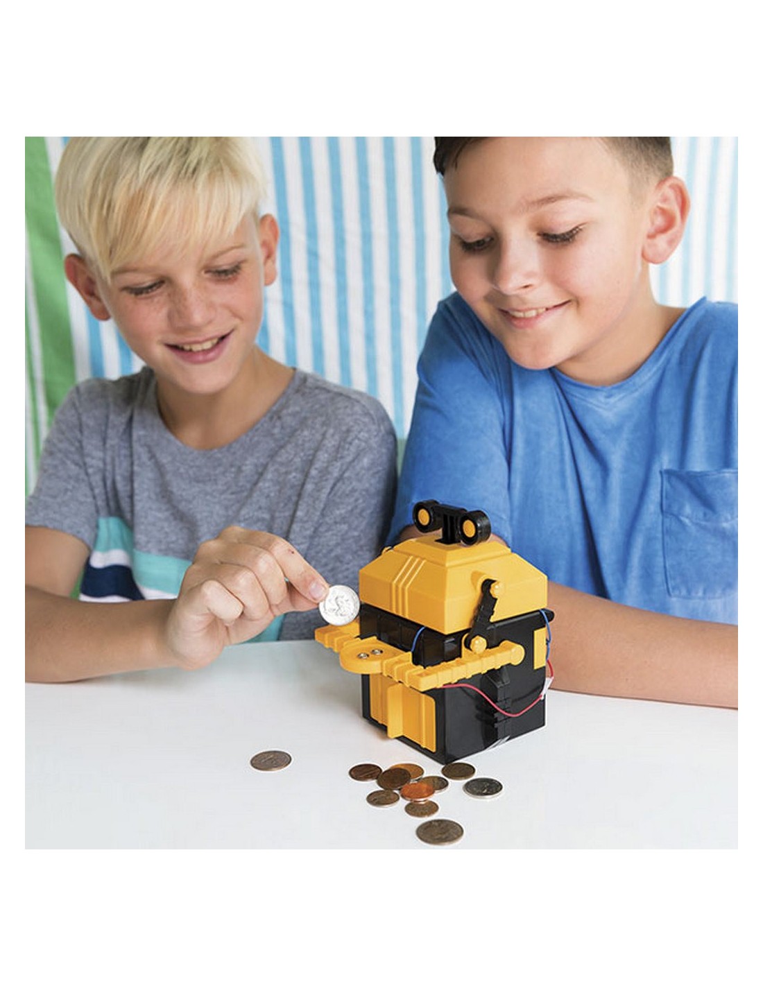 Te presentamos, de la mano de la fantástica marca 4M, este robot hucha. A los peques de la casa les encantará este robot, y es que es super original y…. ¡En realidad es una hucha! Los peques podrán colocar una moneda en la bandeja del brazo para poder guardar sus ahorros, verán como el robot se traga la moneda automáticamente. Para poder recuperar la moneda, solo tendrán que abrir el cajón.