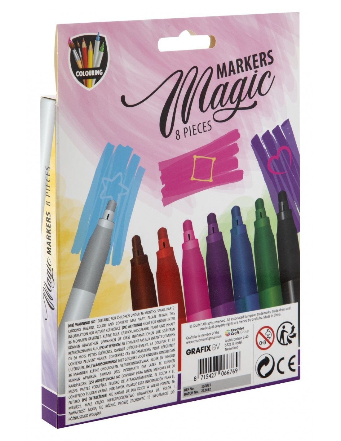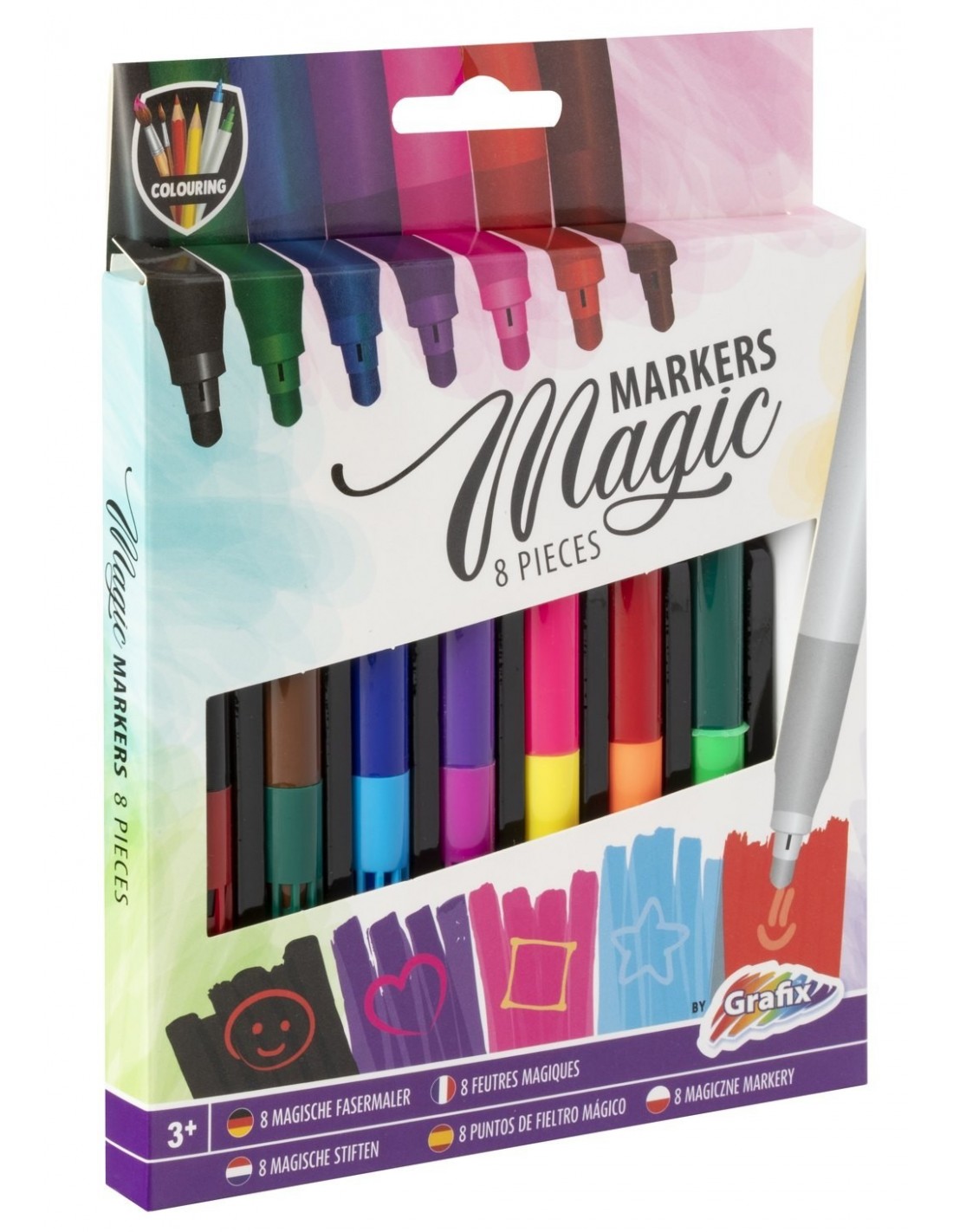Para los artistas de la casa y la clase, os traemos estos rotuladores mágicos, con 8 unidades por pack. Pintando con los rotuladores de colores, podréis usar sus colores como fondos y, con el fieltro blanco, pintar encima y ver cómo cambian los colores de las nuevas formas que dibujáis. ¡Magia!