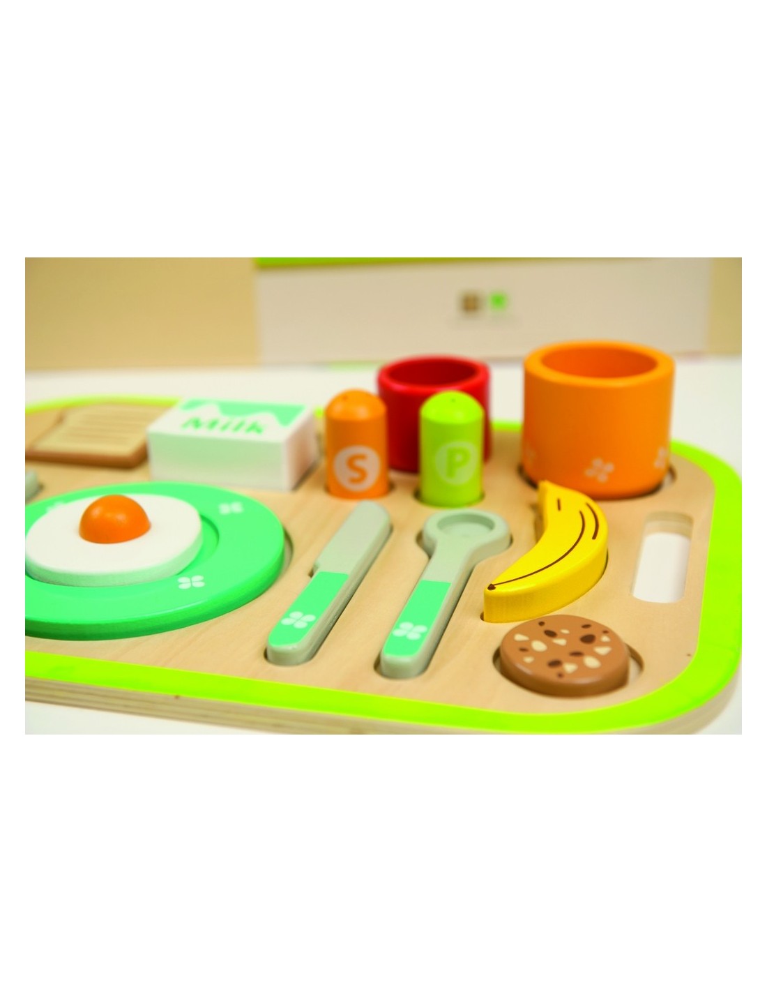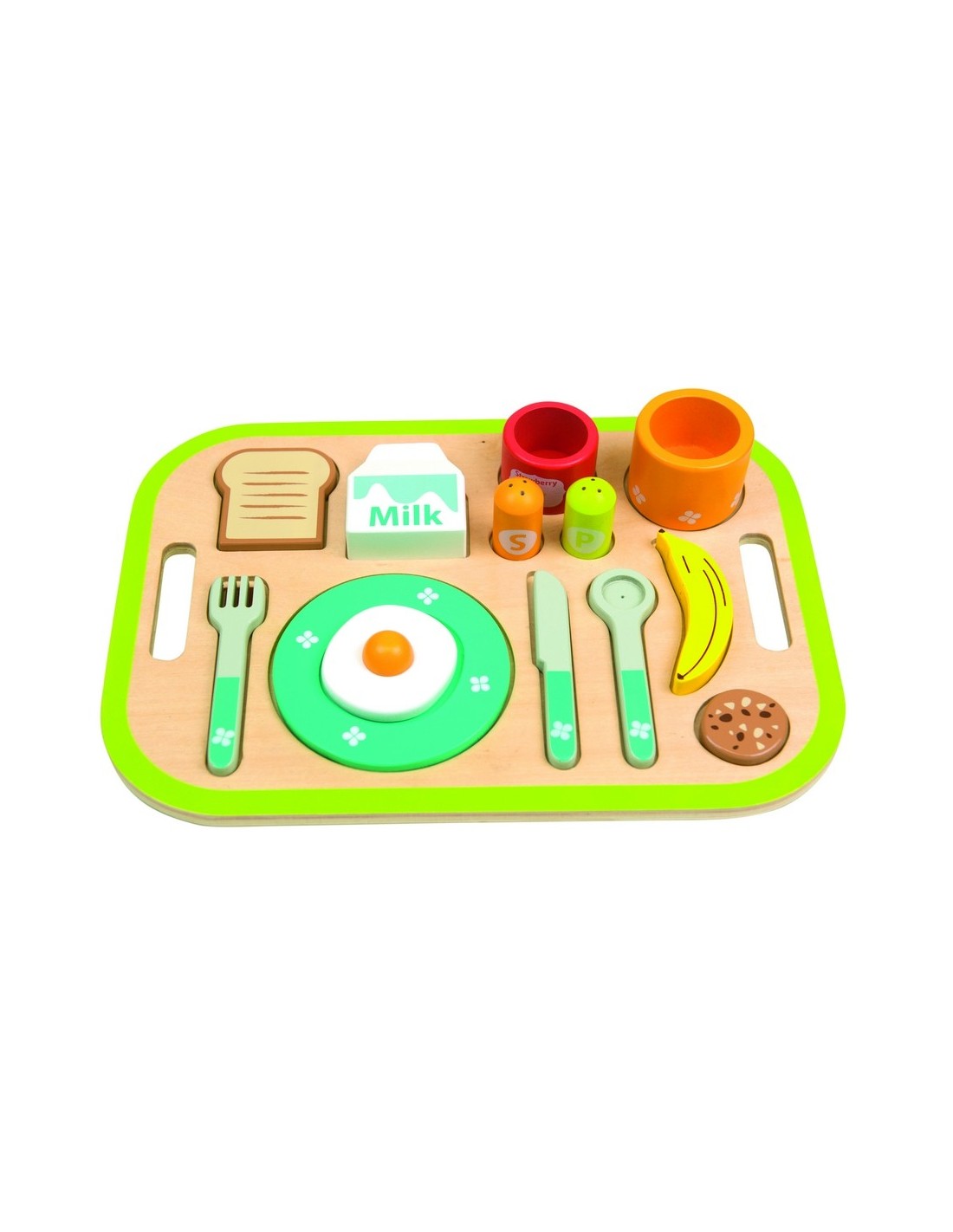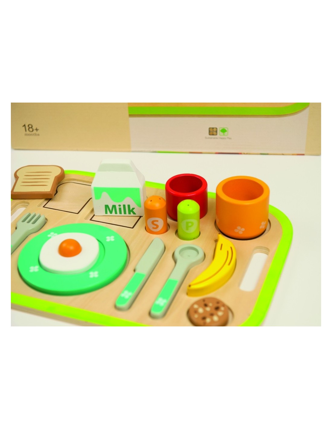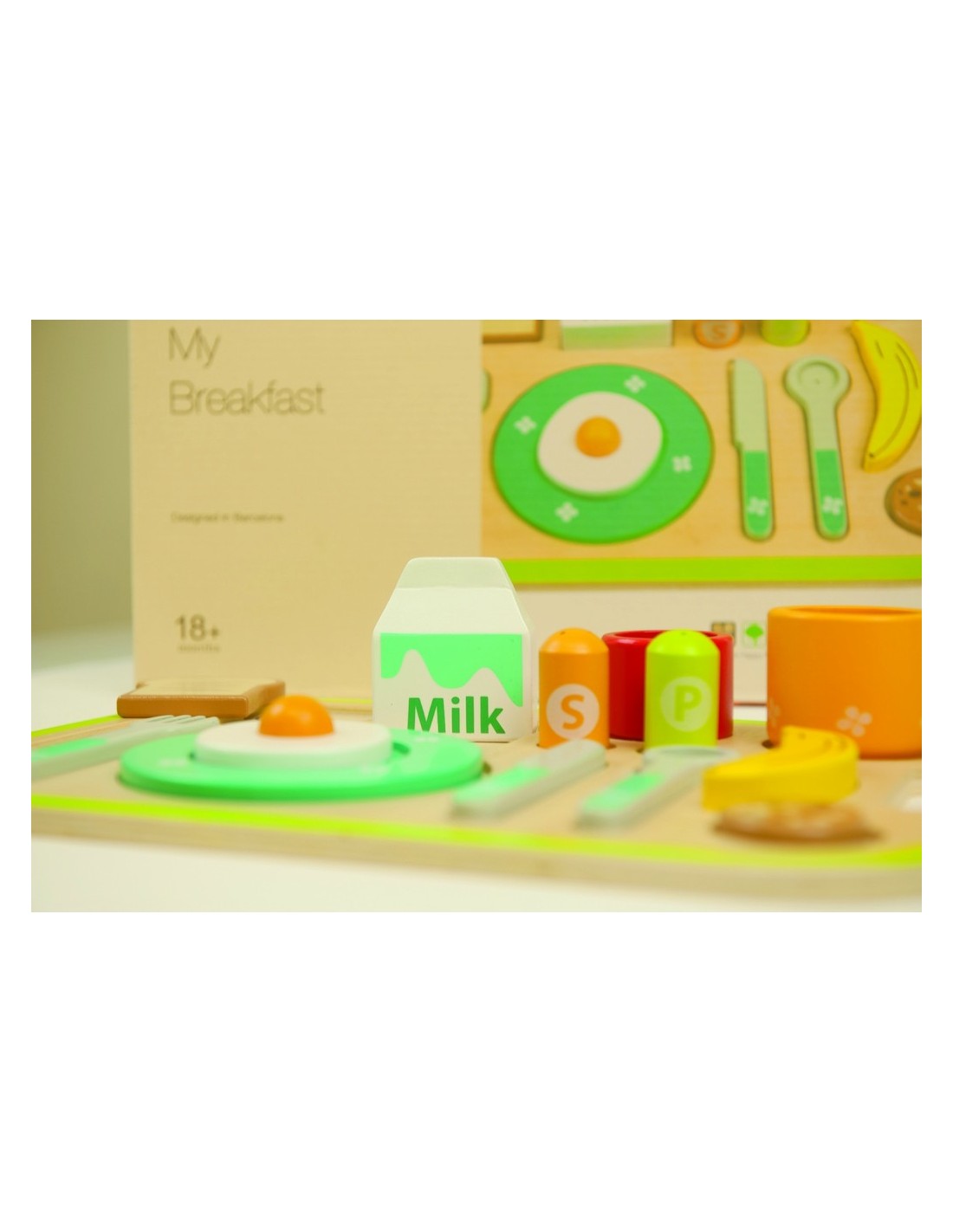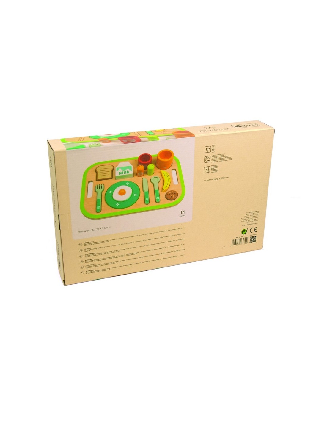 ¡Todo el mundo a la mesa que el desayuno ya está preparado! Es la comida más importante del día, así que la tenemos que tener en cuenta. Es por eso que Andreu Toys nos presenta un fabuloso Set de Desayuno de Juguete. En este pack encontrarás los alimentos típicos de un buen desayuno: Cookies, leche, tostada con huevo frito... A parte encontrarás un plato, los cubiertos, los vasos e incluso una fabulosa bandeja donde podrás poner todo el material y quedará bien encajado. Todos los materiales están hechos de madera, así que será un gusto jugar con este fabuloso juego. Acabados perfectos y un diseño precioso, ¿qué más se puede pedir?